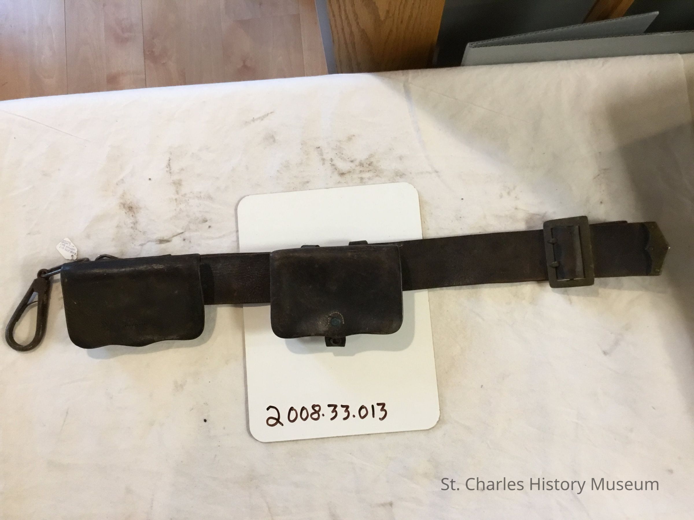 Leather belt with 2 pouches belonged to George Porter of the 8th Illinois Cavalry. This belt with pouches are of Union issue that George Porter would have used.Lexicon