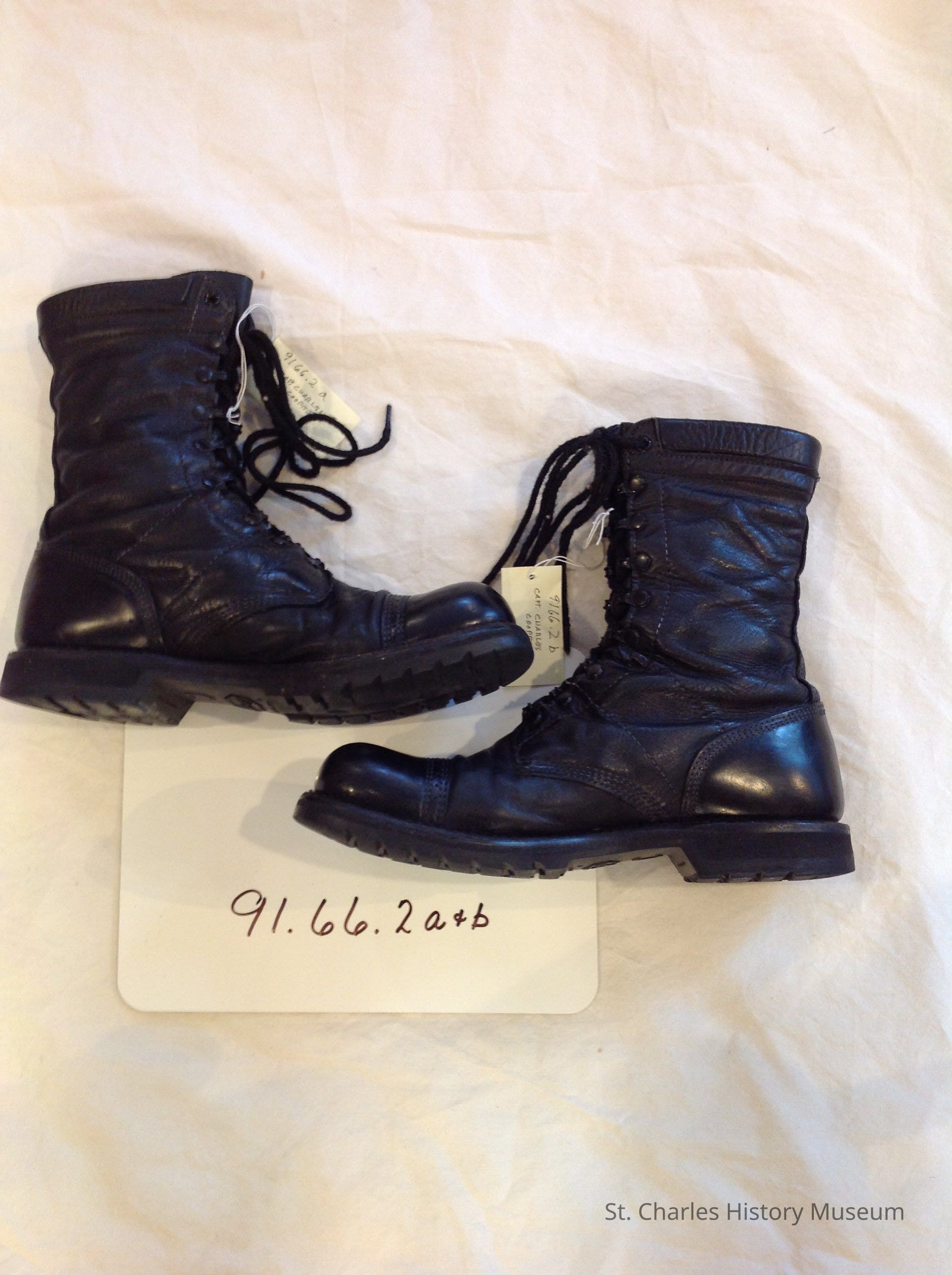 Boots. Size 12D. Block leather. Lace up front. Belonged to Army Capt. Chuck Cooper.Created By