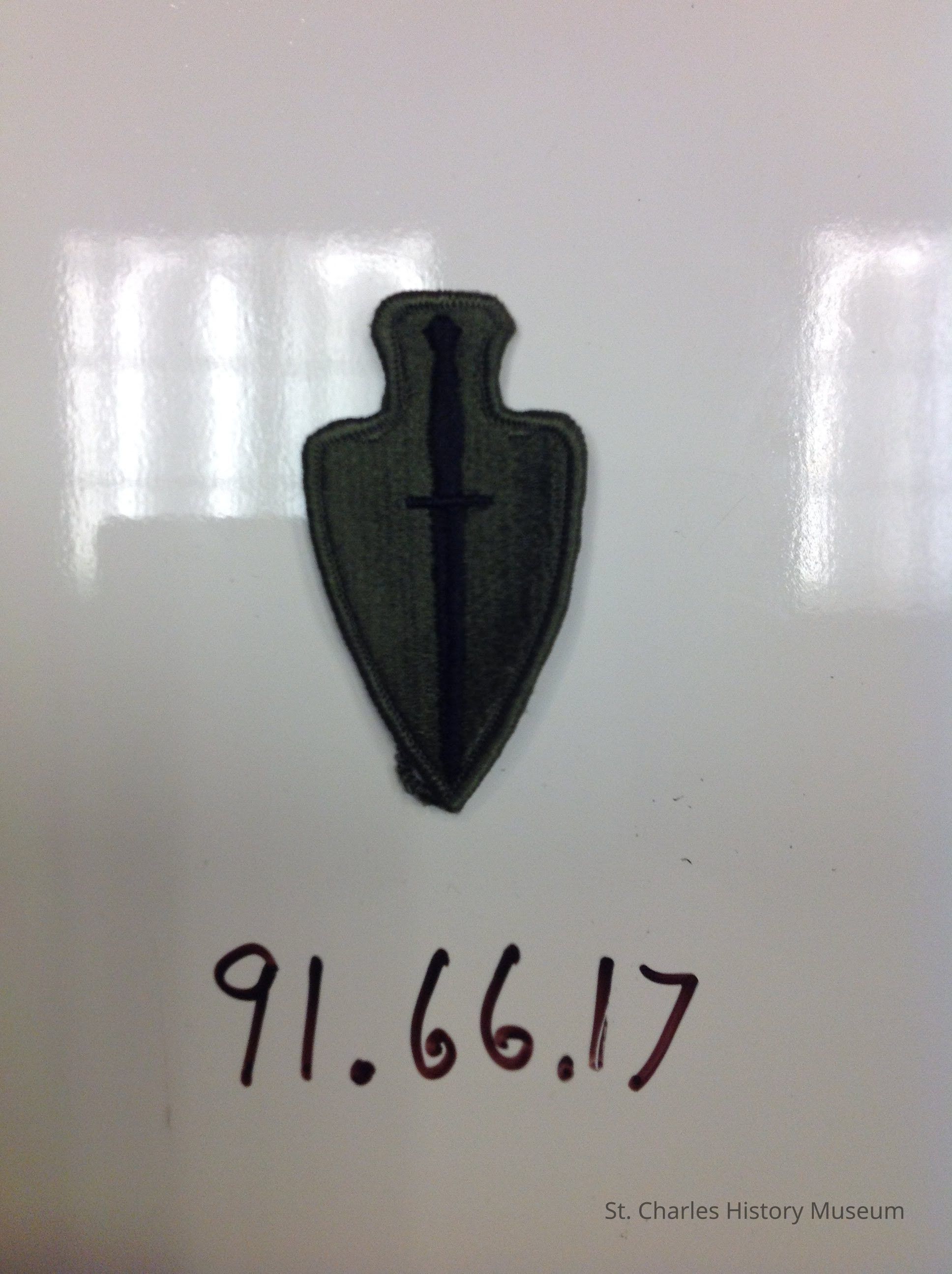 Same as 1991.066.016 except patch is dark green with a black sword in center.Lexicon