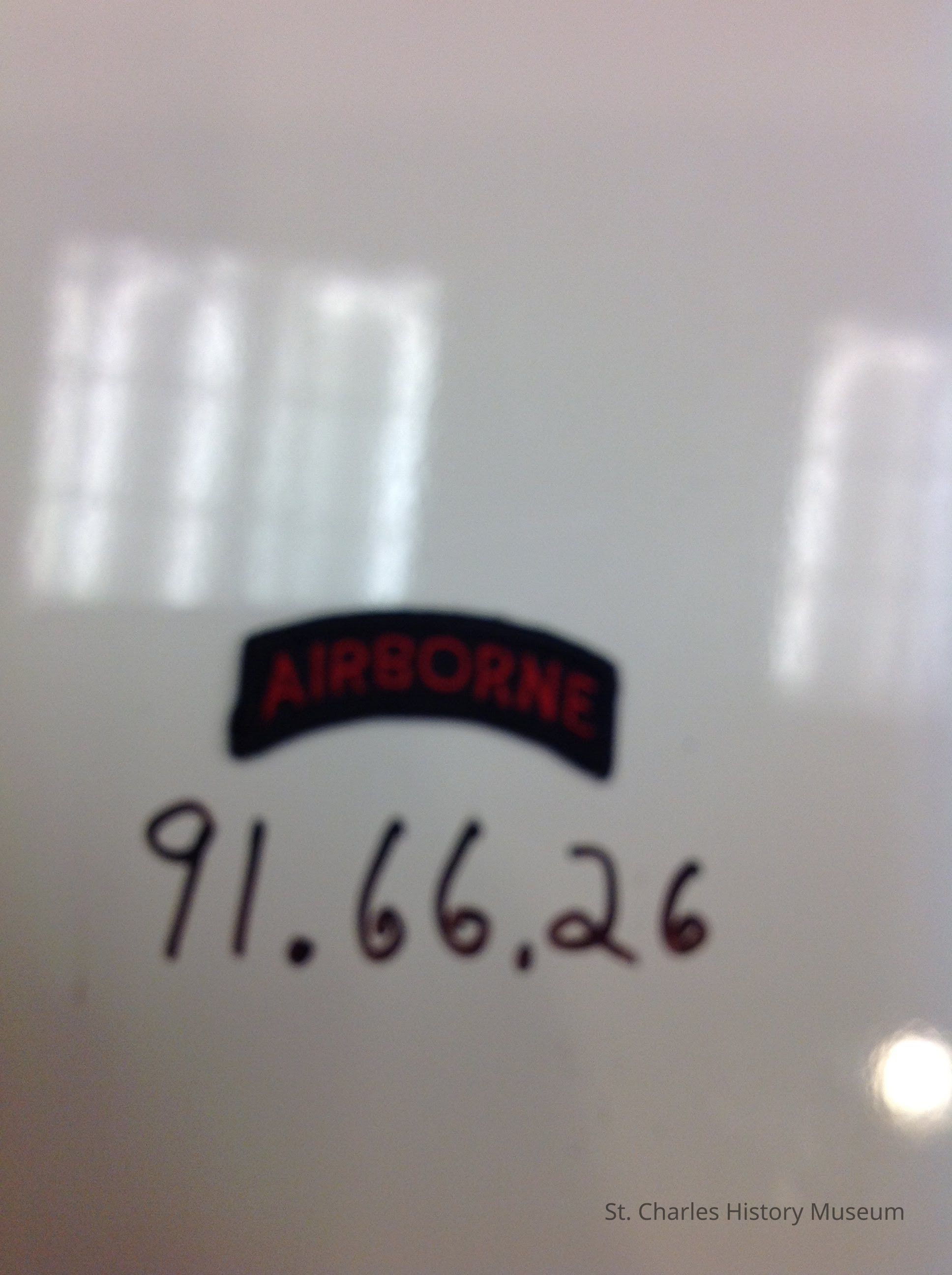 Same as 1991.066.025 except tab is black with red letters. Worn on dress uniform.Lexicon