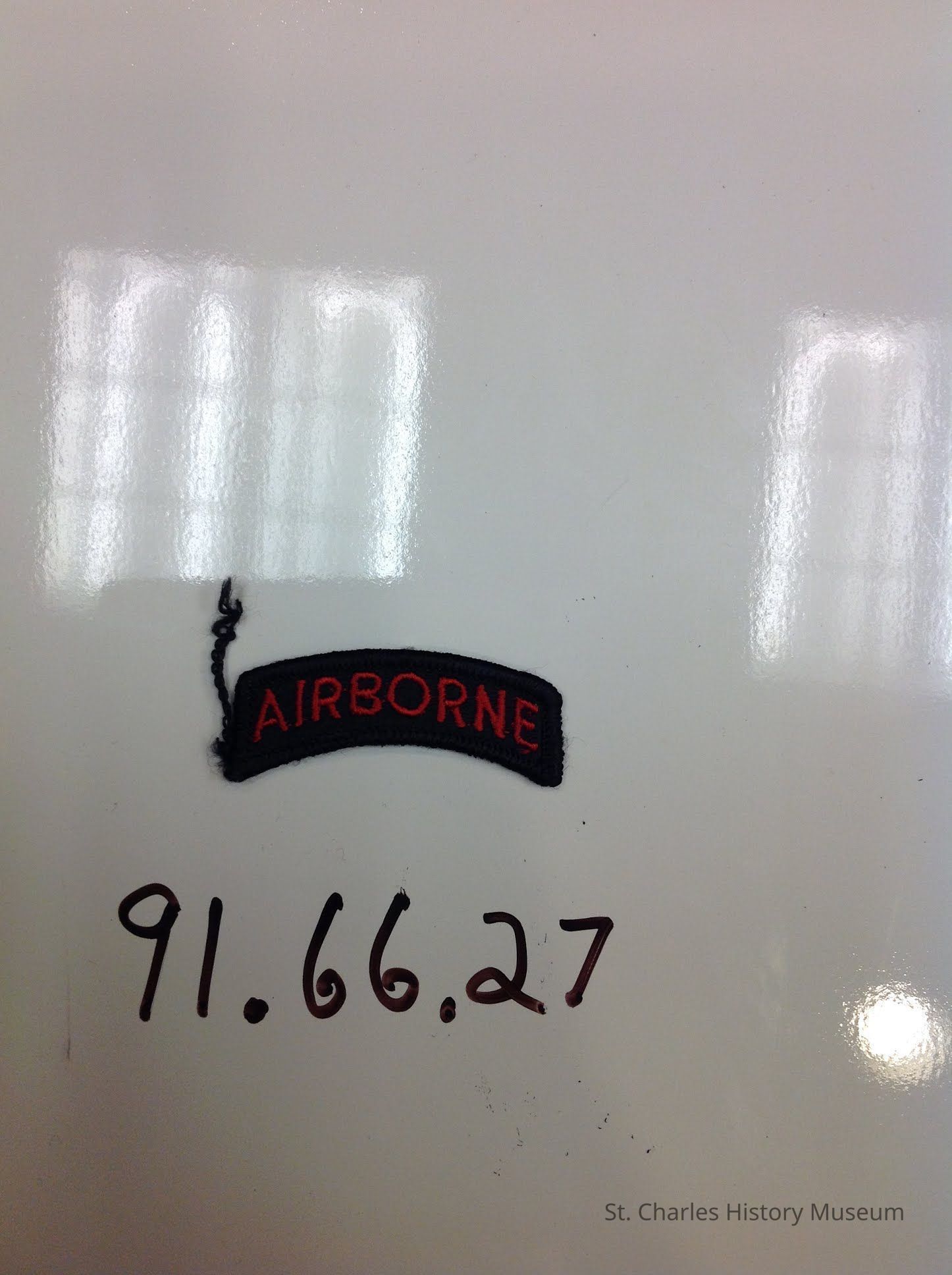 Same as 1991.066.025 except tab is black with red letters. Worn on dress uniform.Lexicon