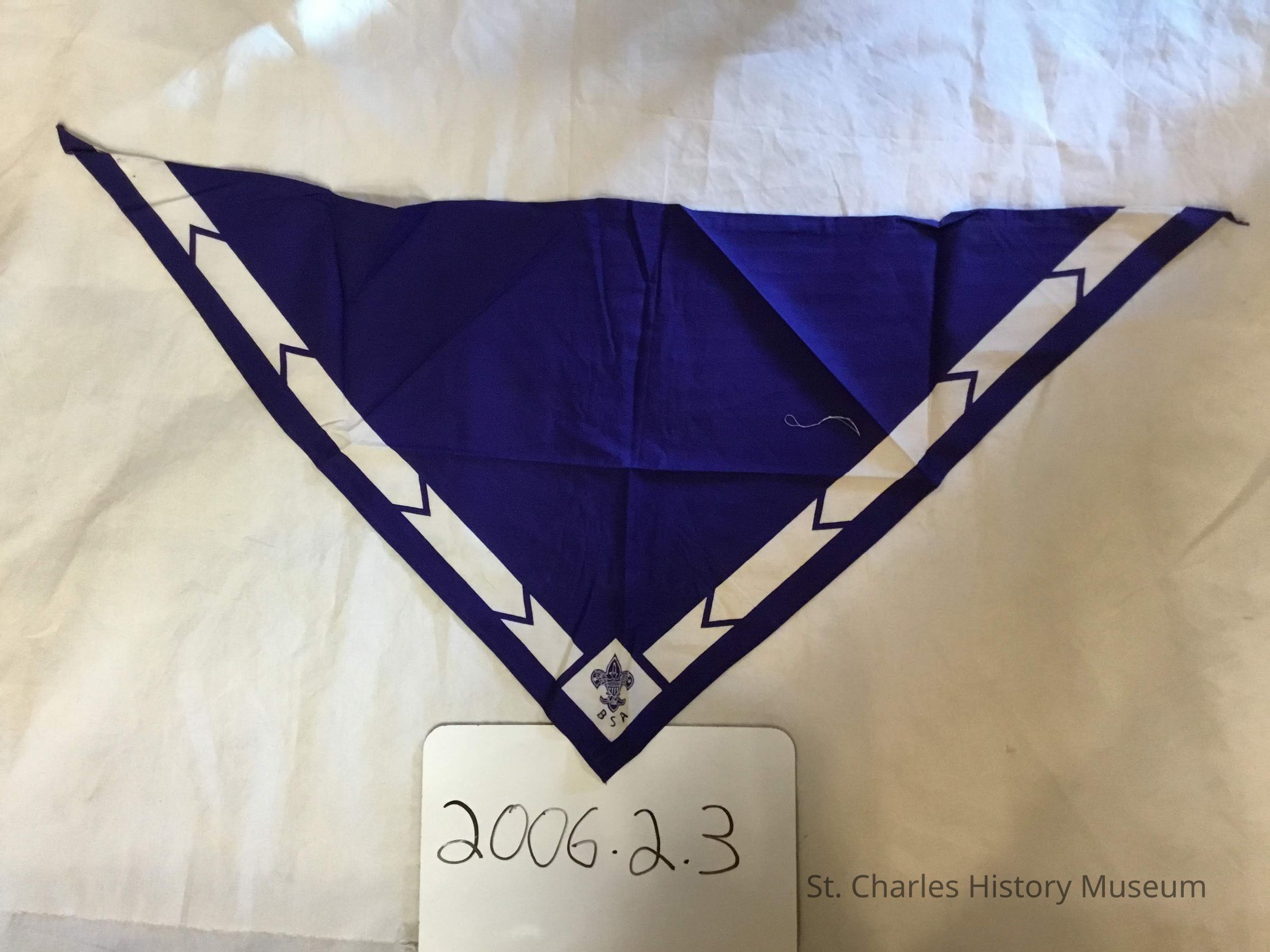 Boy Scout neckerchief, purple with white and the insignia of the Boy Scouts.