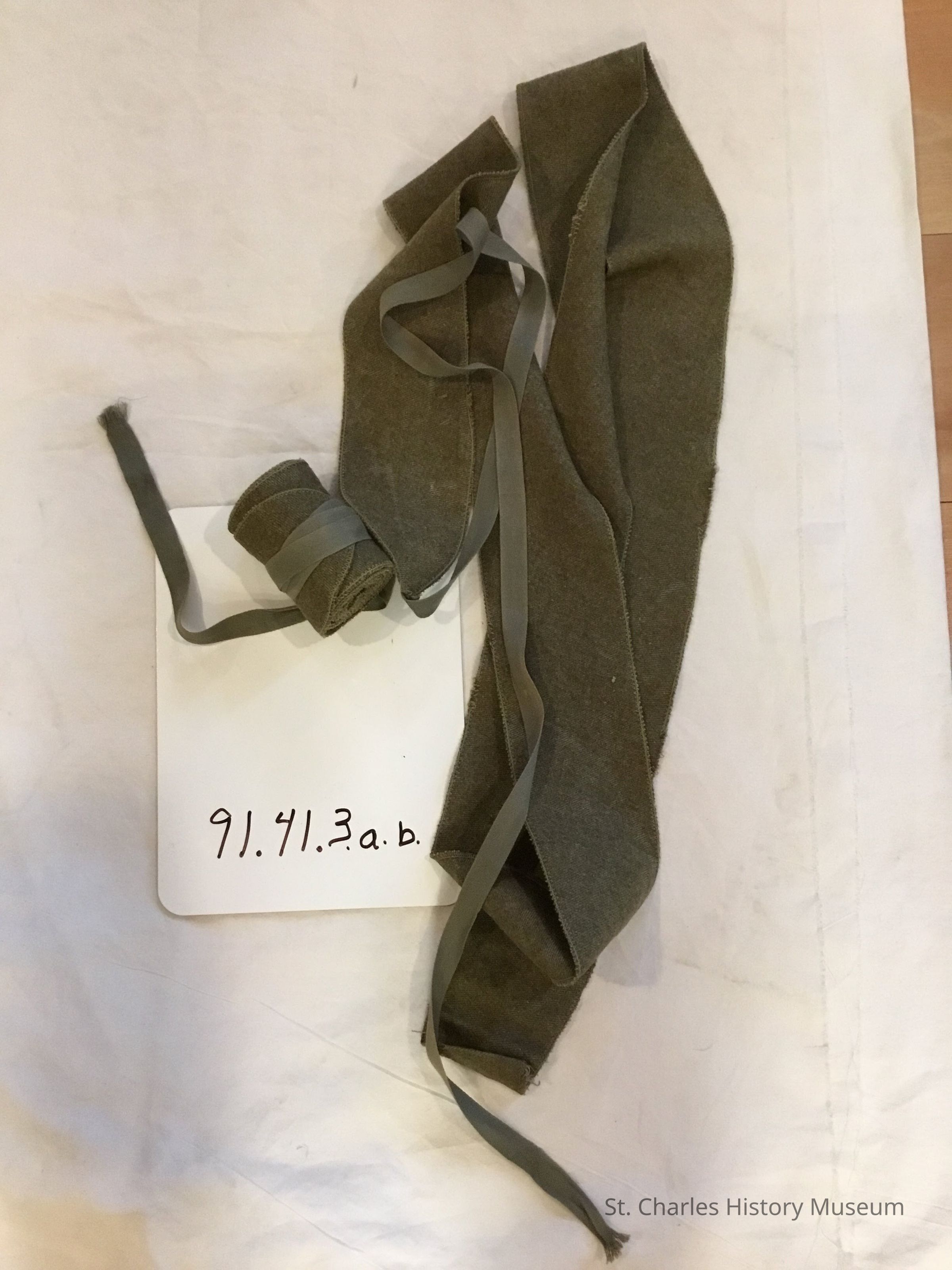 9'2" L and 4'4" W Wool, olive drab wool strip with cotton twill tape attached at one end 91.41.3 Gift of Bert DriessenCollection