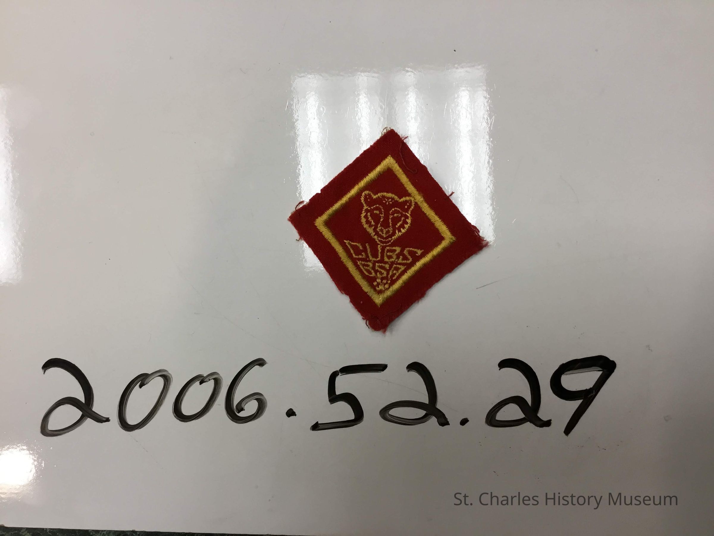 Triangular red patch with the Cub Scouts of America logo embroidered on it.