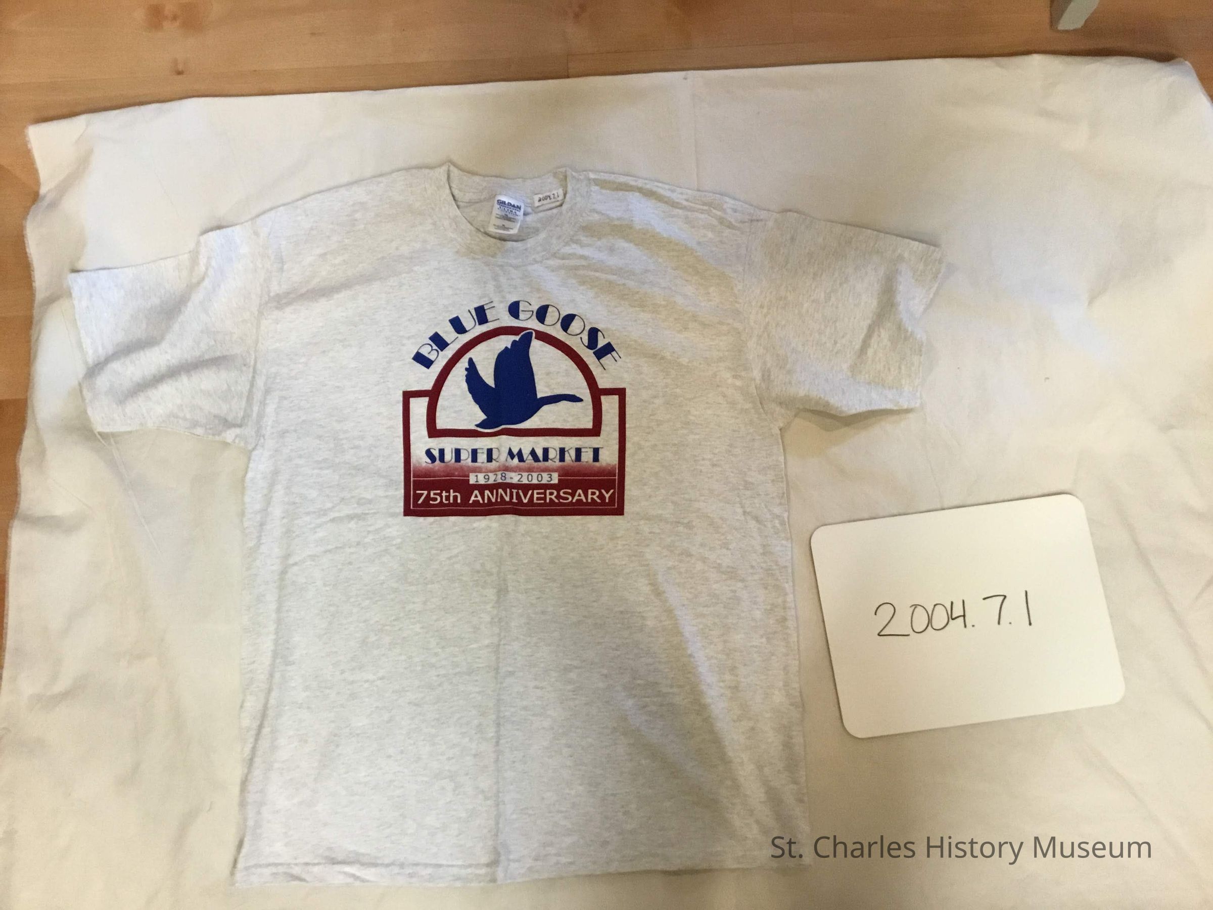 Blue Goose gray cotton T-Shirt given to valued customers in honor of the store's 75th Anniversary.