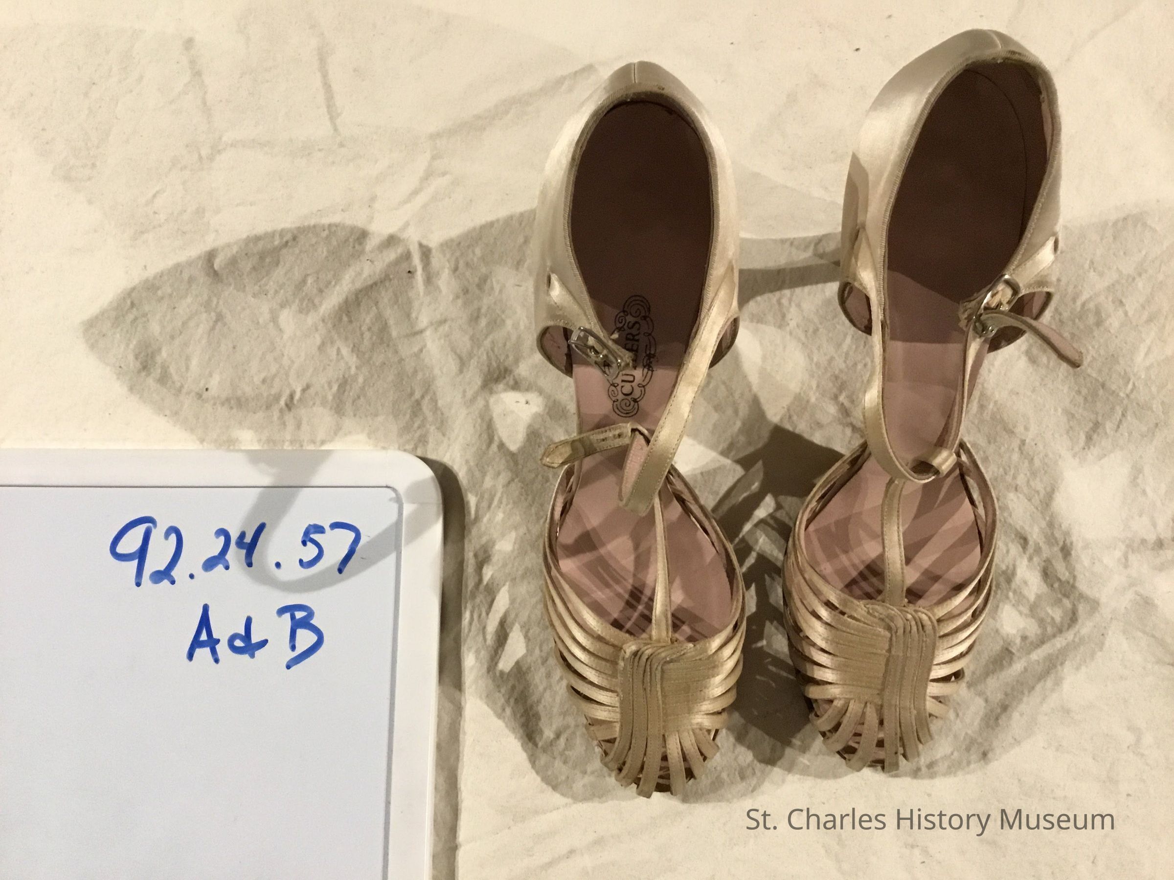 White slip, thin straps. Handmade. v-neck. Worn under 92-24-55 wedding dress. Worn by Mary Coryn, 1933.Lexicon