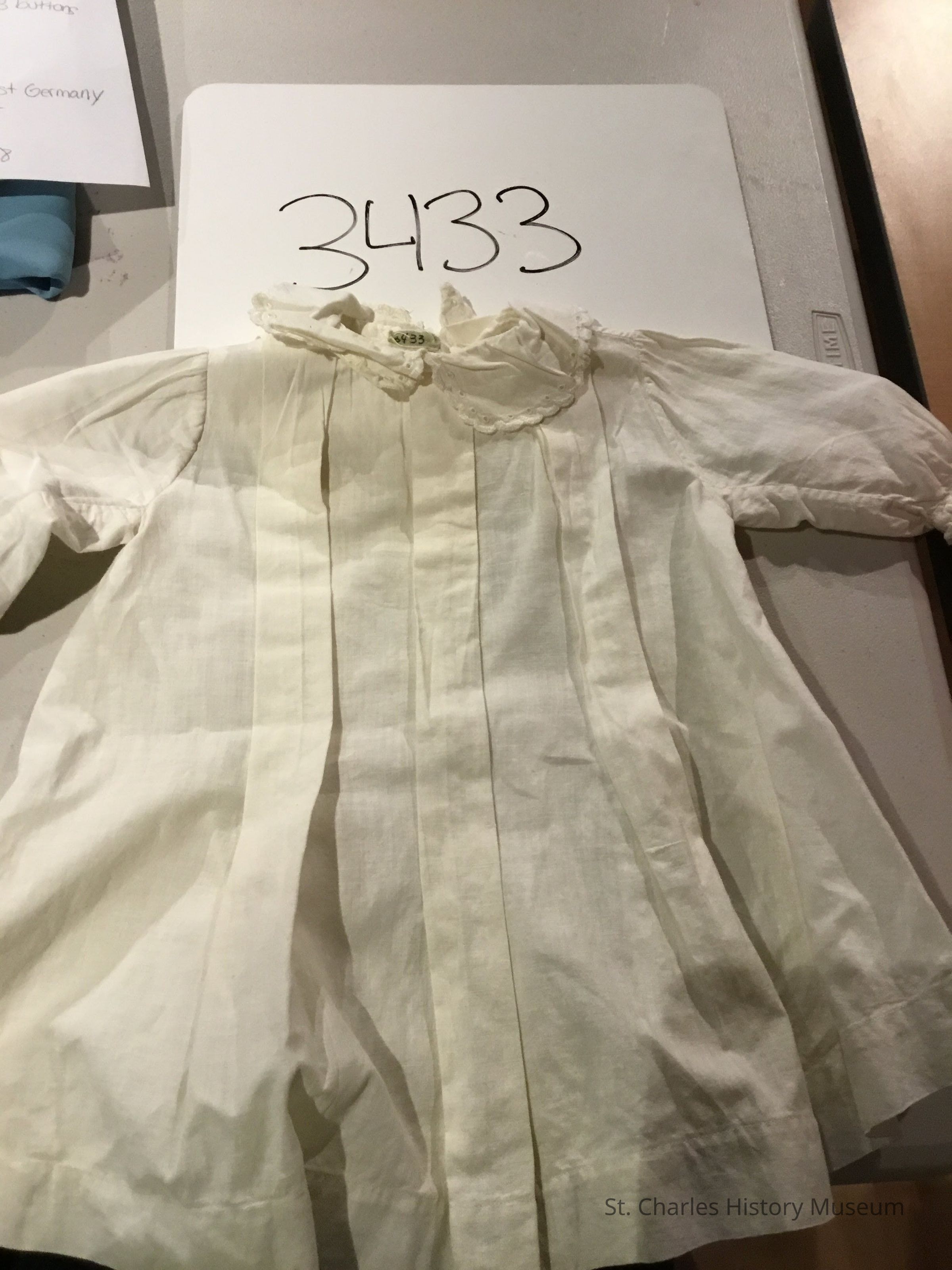 Girl's dress white, long, 7 buttons, straight hemmed bottom.Lexicon