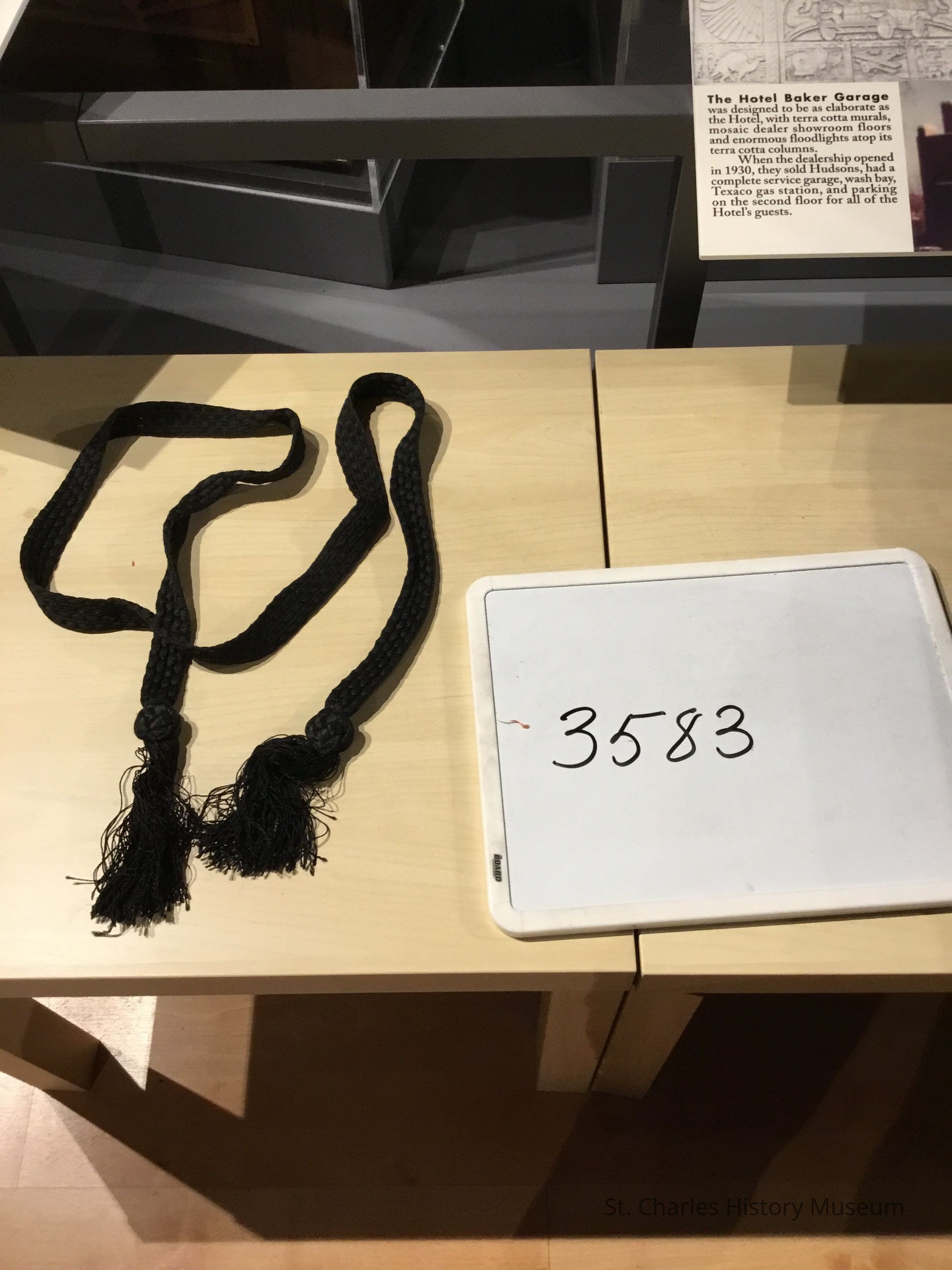 Black woven silk belt, 5" long 1 1/4"w with 5" black tassels at either end. 63" long excluding tassels.Lexicon