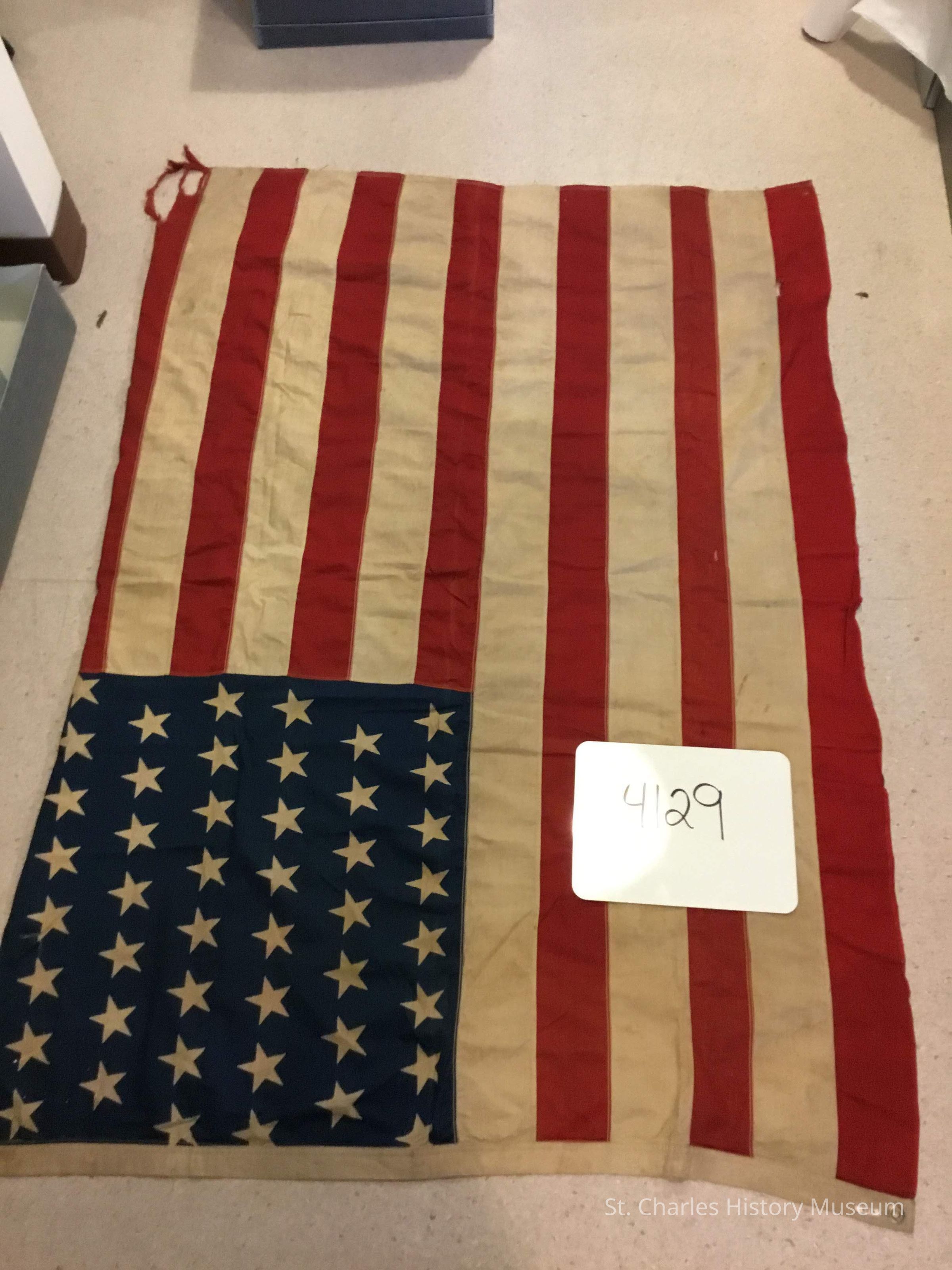 46 starred U.S. flag Red, white and blue 2 metal gromets Damaged