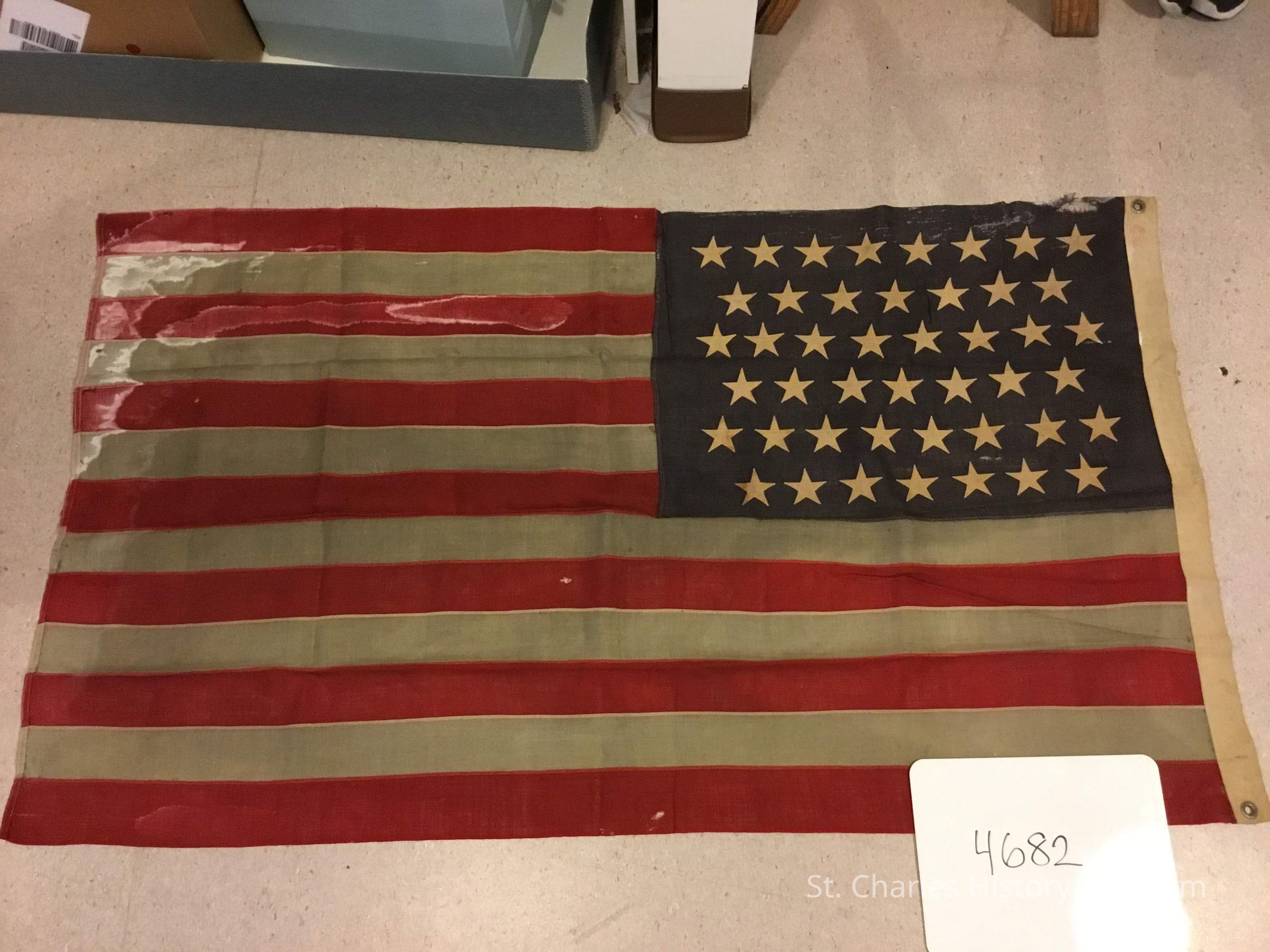 U.S. flag of 1898 with 45 stars from the Spanish-American War.