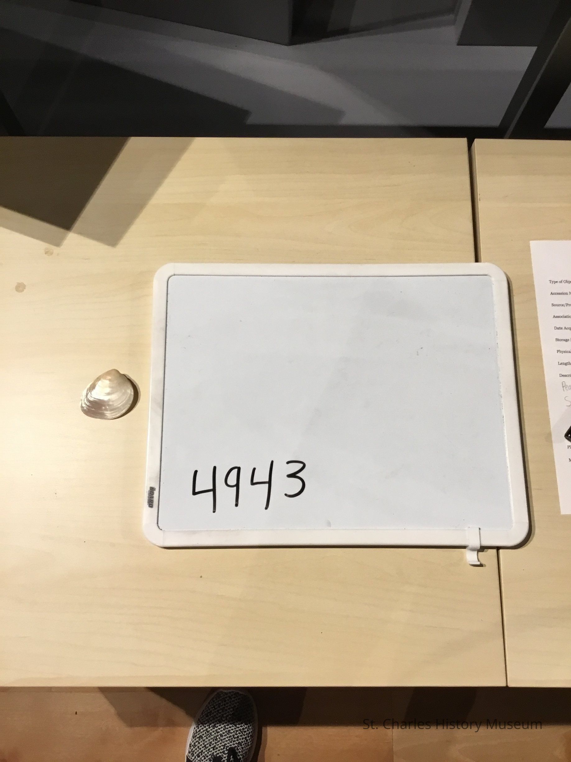 Seashell pin of pink shell with pin attached to back belonging to the Samuel Durant family.