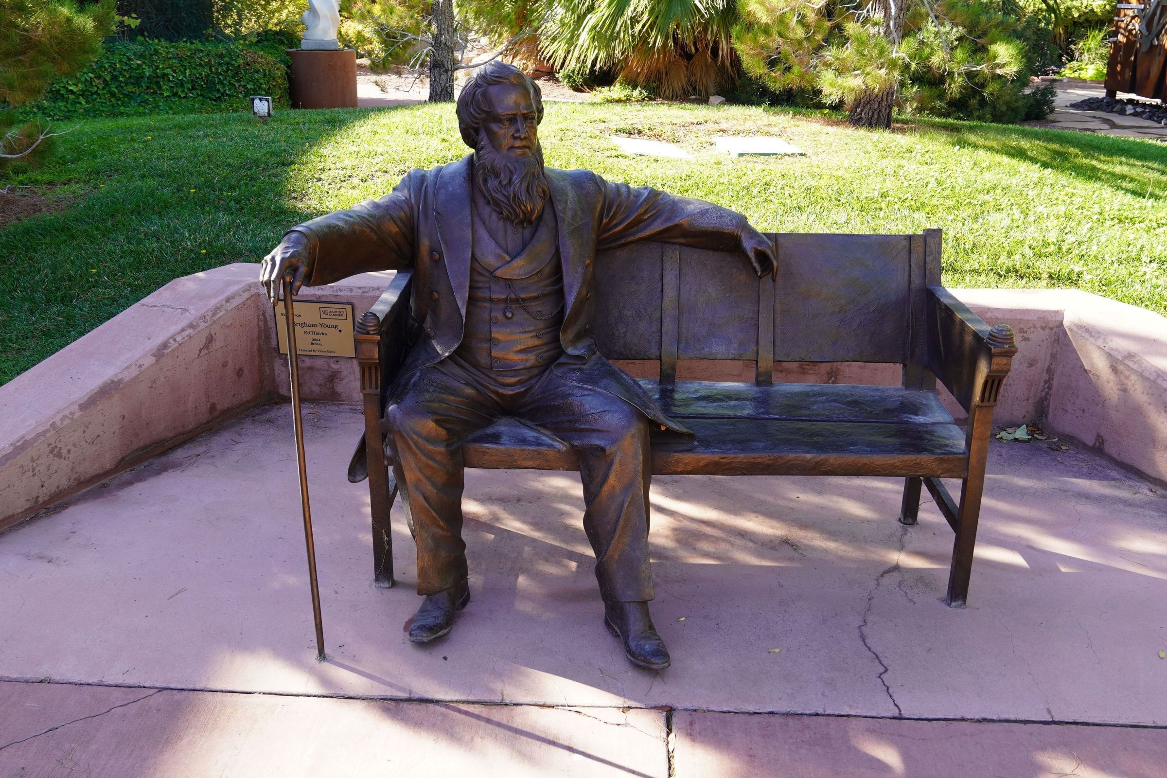 Bronze Sculpture of Brigham Young sitting on a bench 2004