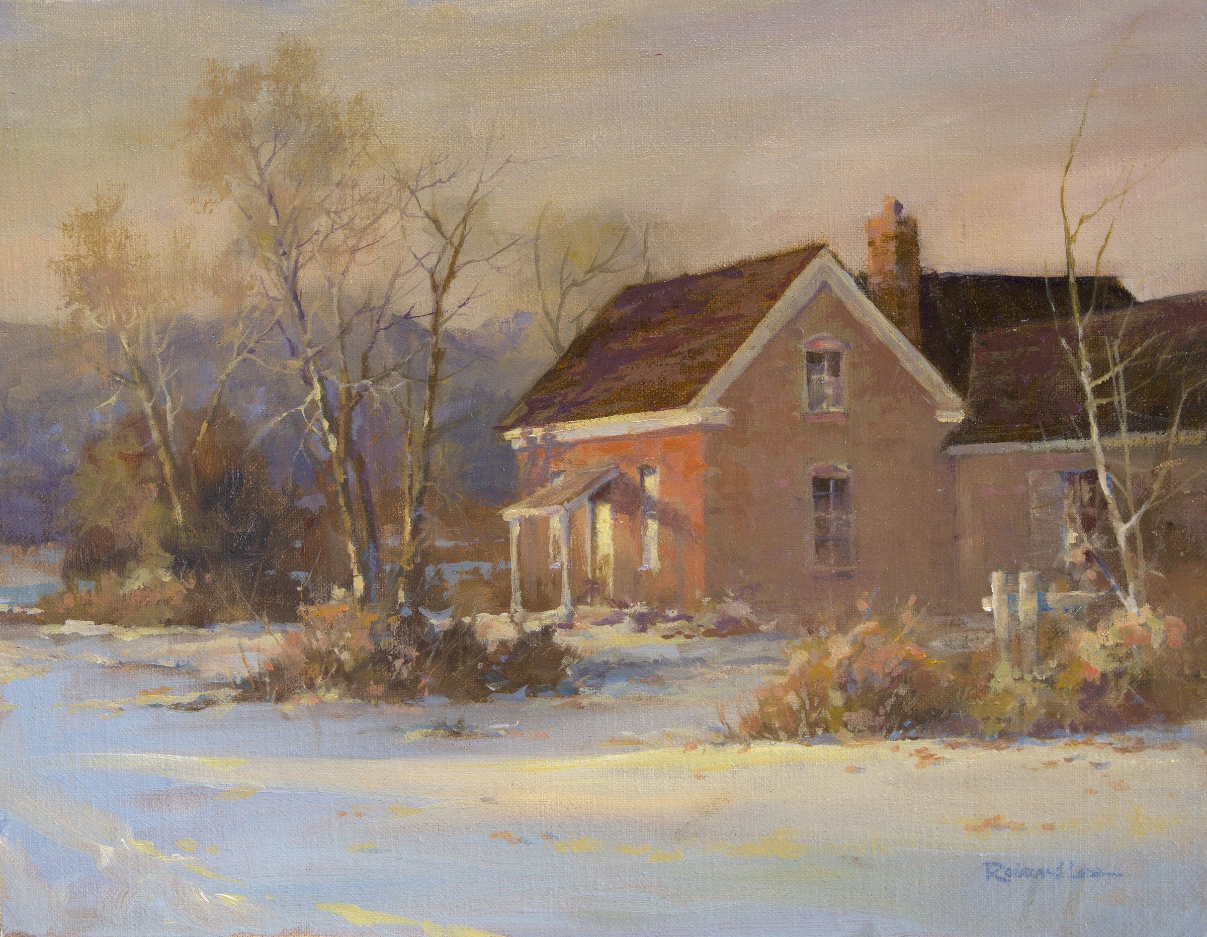 Unframed oil on Belgian linen canvas panel depicting a pioneer home. Panel is 11 x 14 inches.Acquisition