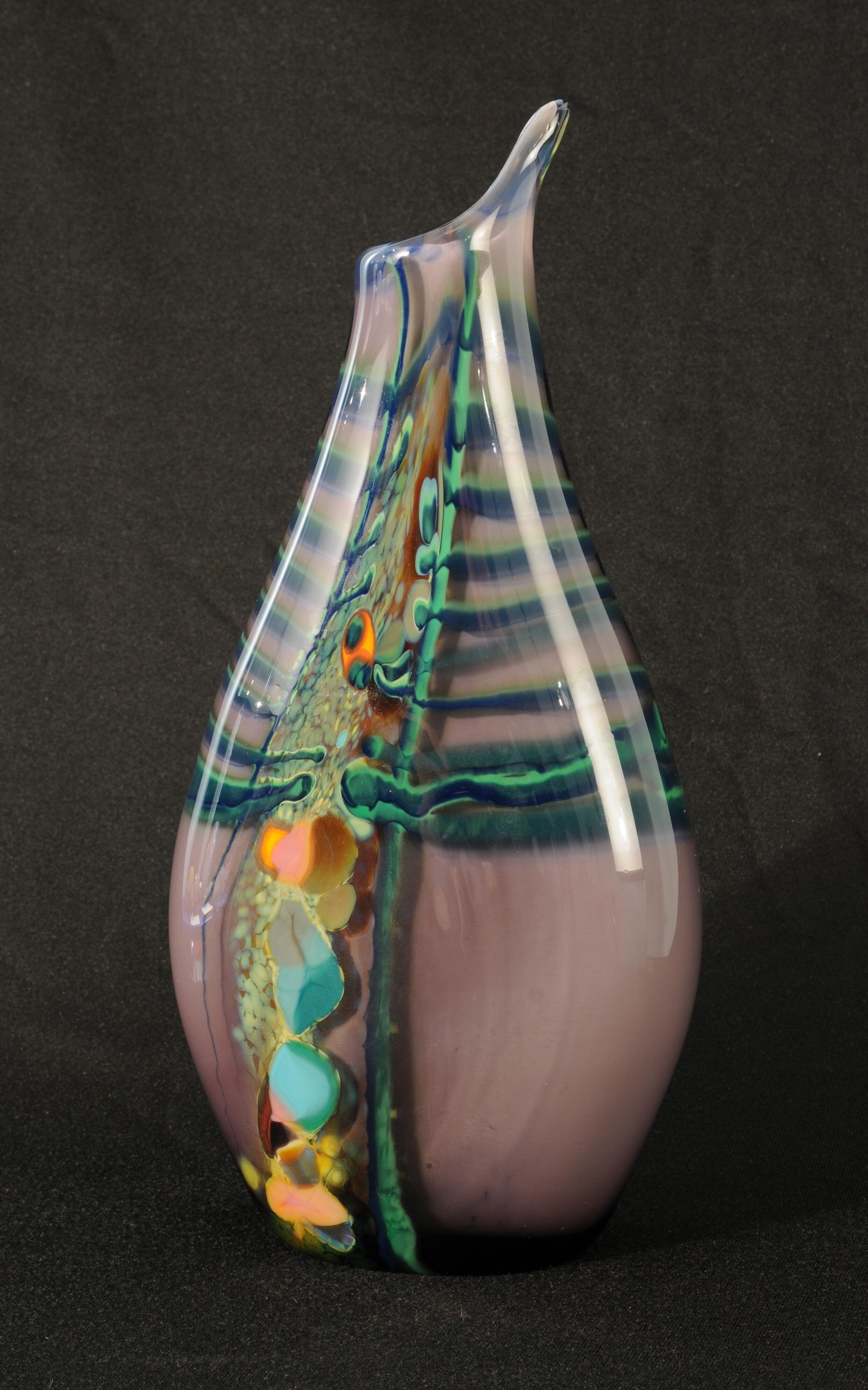 2 of a set of 3 blown glass bottles