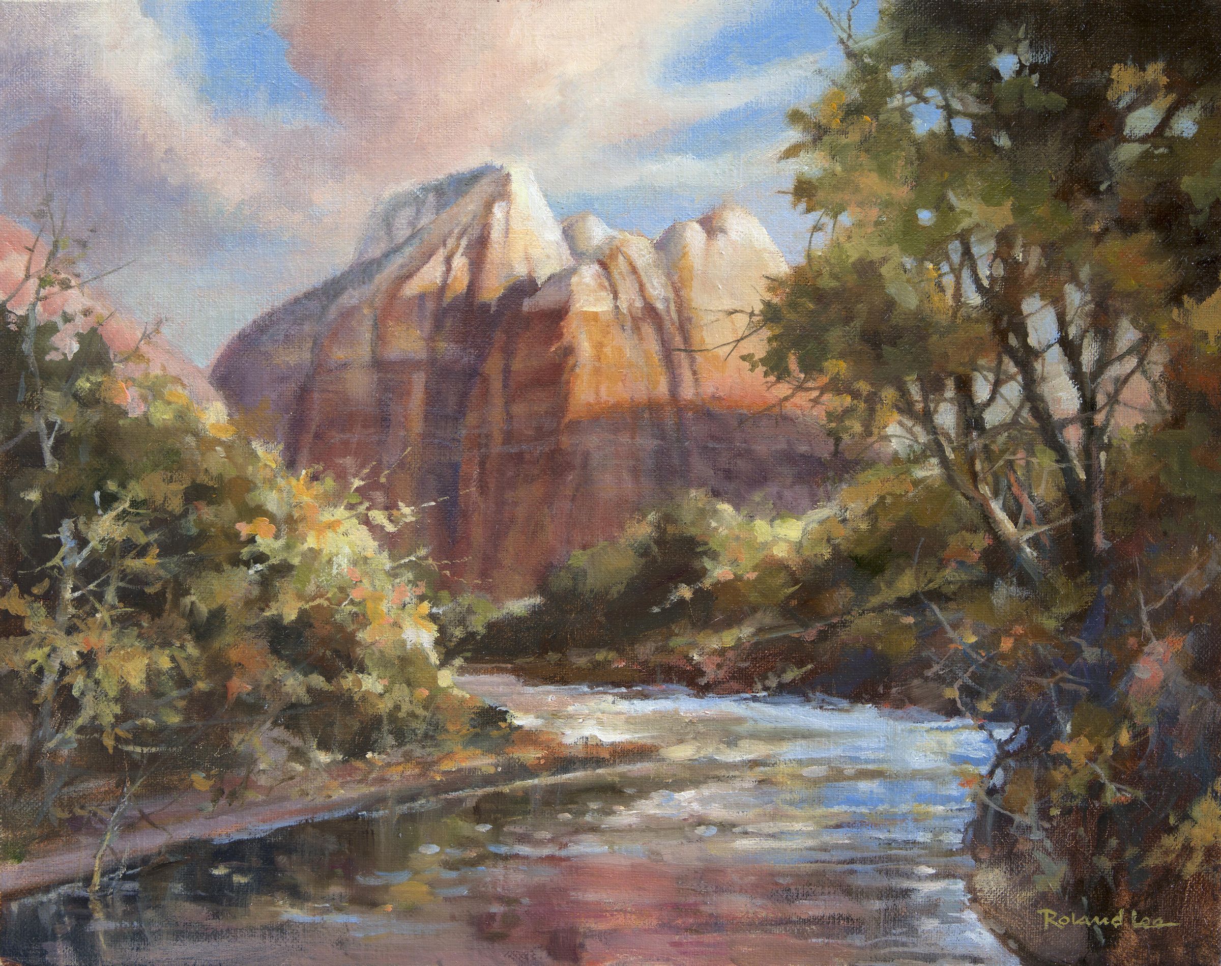 Unframed oil on Belgian linen canvas panel depicting Cathedral Mountain in Zion National Park. Panel dimensions are 11 x 14 inches.Acquisition
