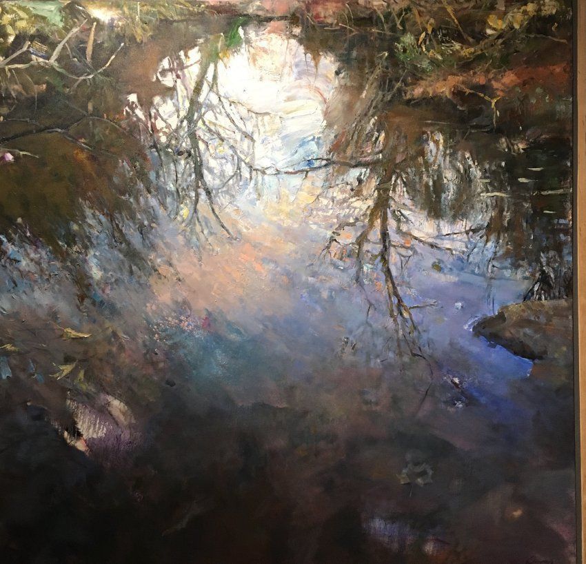 Painting of water with leaves