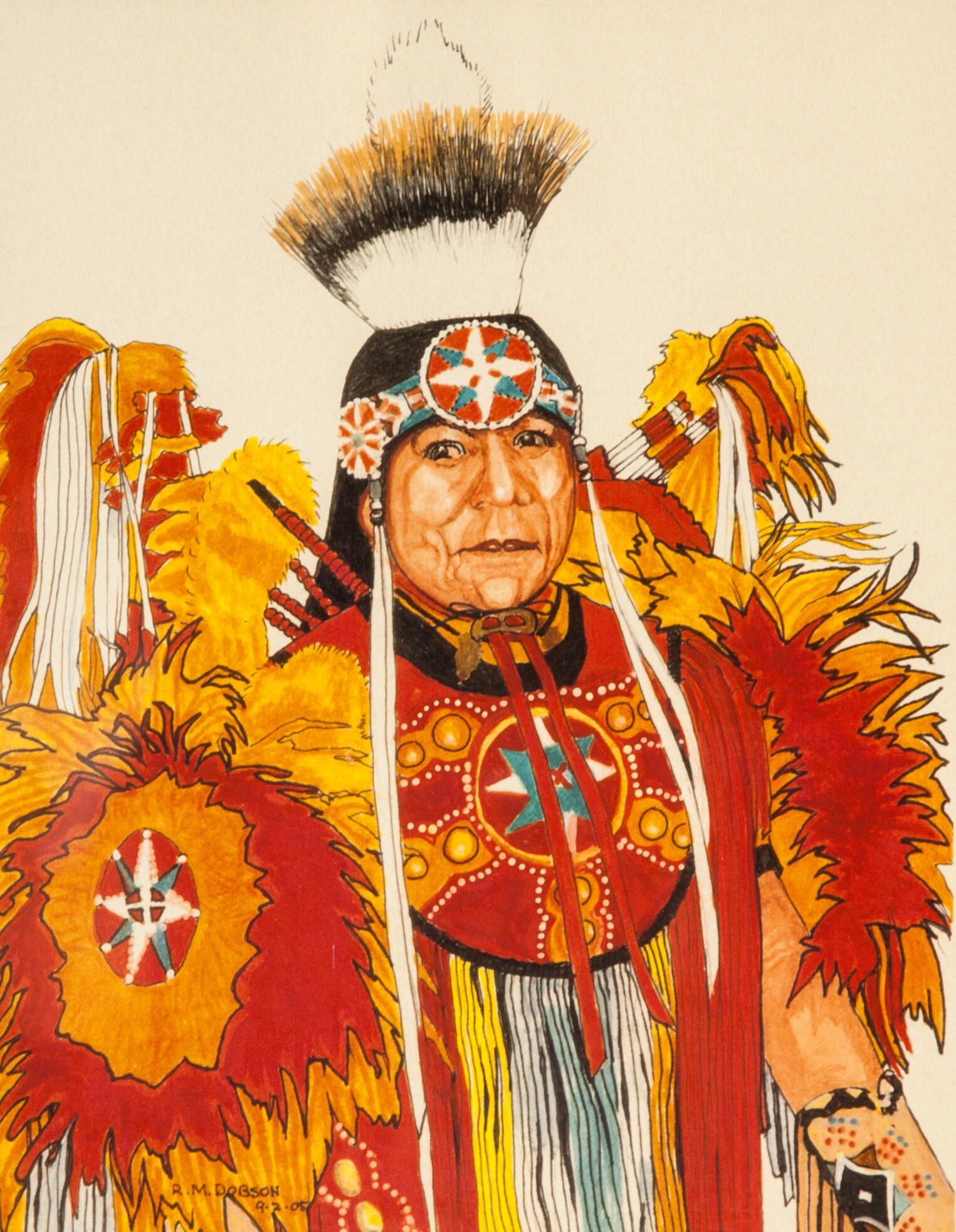 Framed painting of Native American - Paiute in ceremonial dress from Paiute Powwow in Cedar City, 9/2005Acquisition