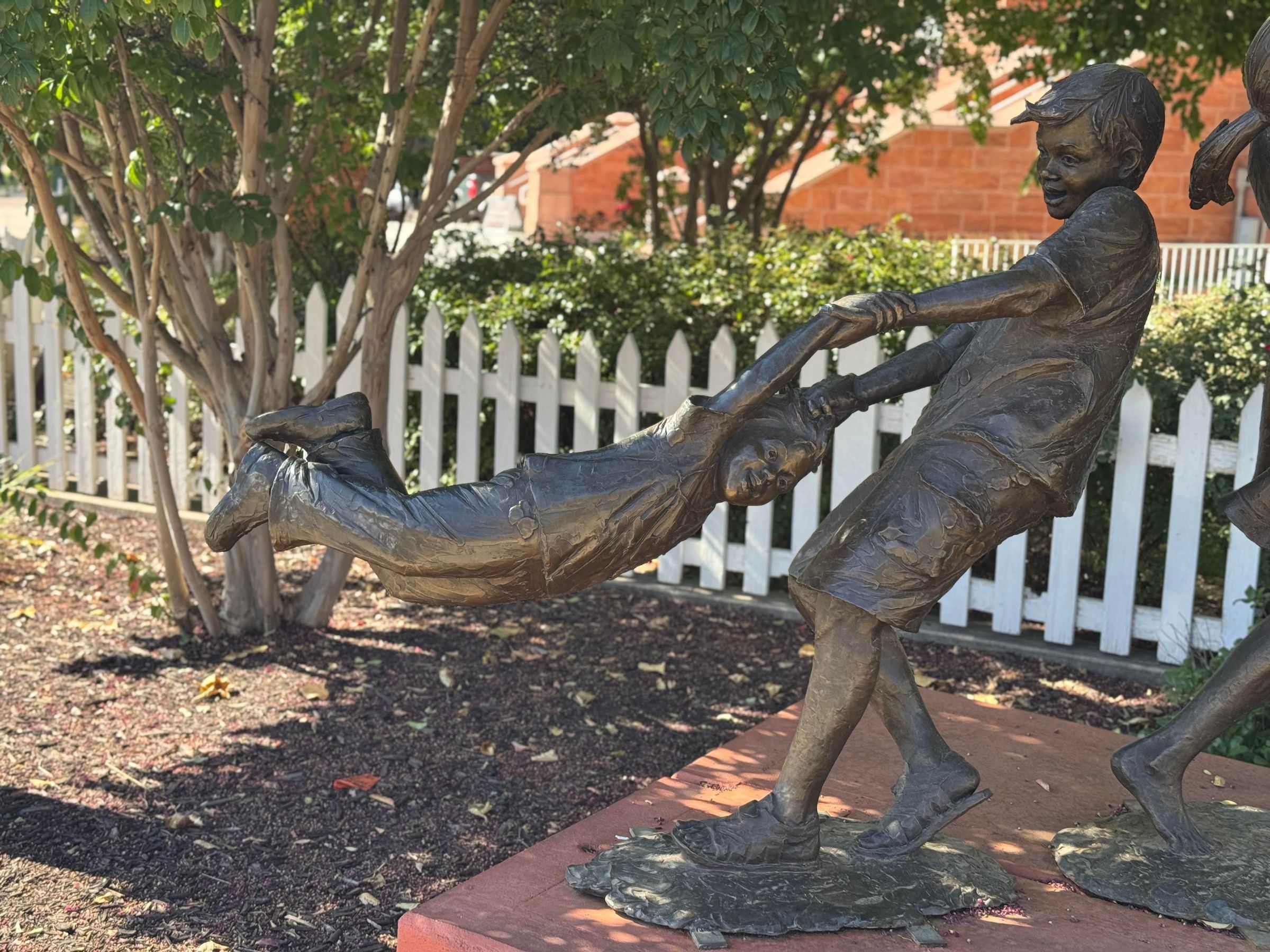 1 of 2 pieces - children playing airplane rides. This piece a boy is swinging a smaller boy in a circle; they are at the low point of the circle in this sculpture.Acquisition