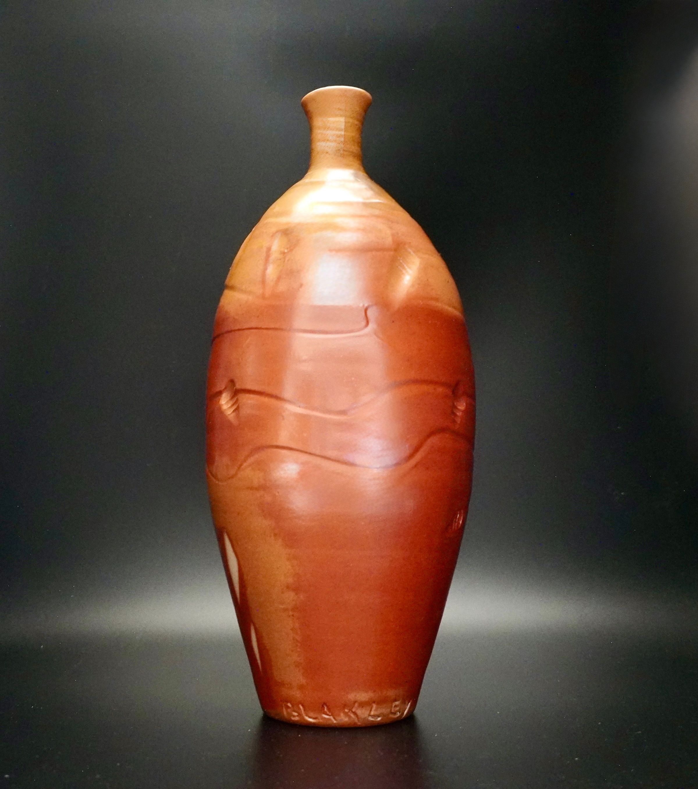 Ceramic vase, glazed porcelain, red tan color. Donation for Soup N' Bowl Fundraiser.