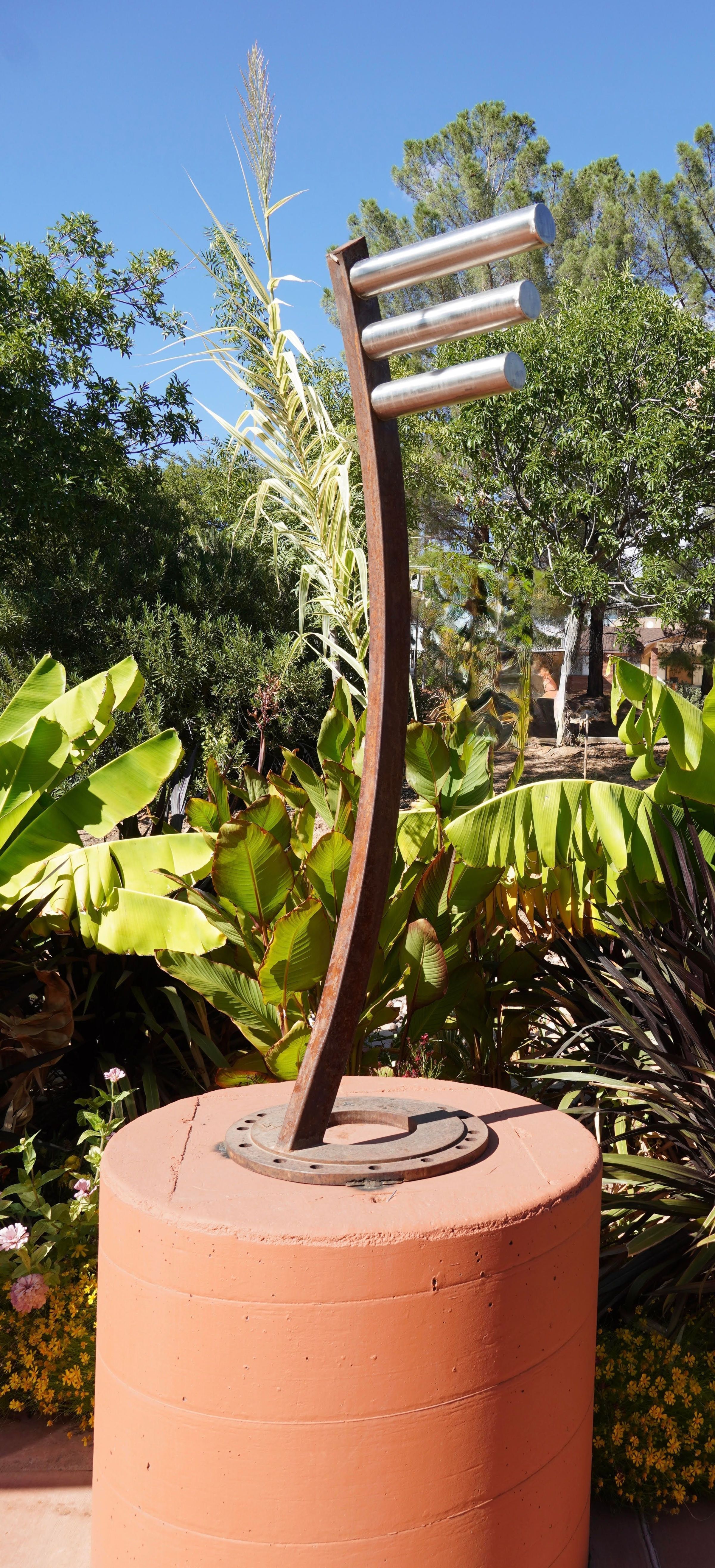 Abstract sculpture - post with 3 perpendicular shapes of graduated sizes