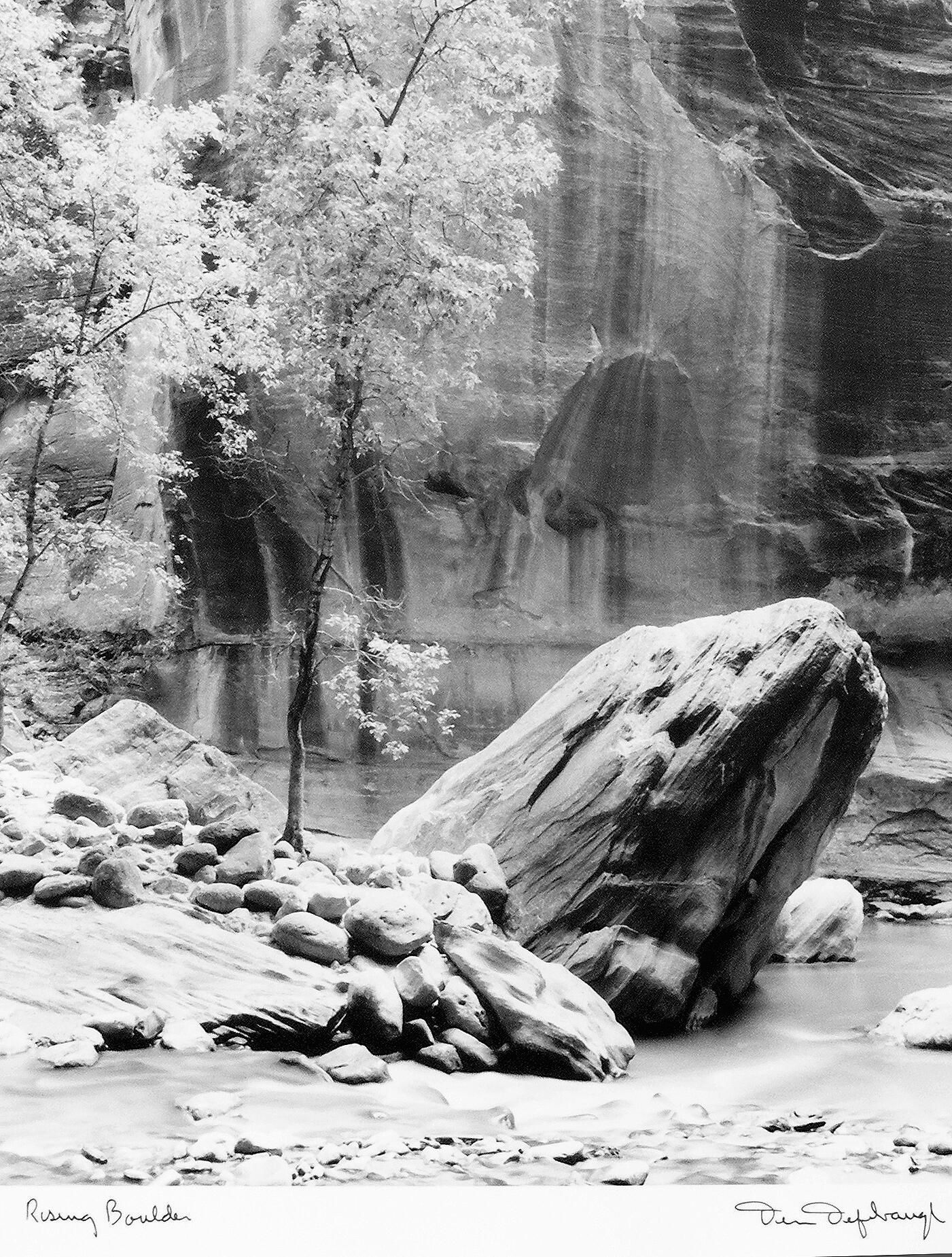 Photograph of a large boulder in the Narrows of the Virgin River in Zion National Park