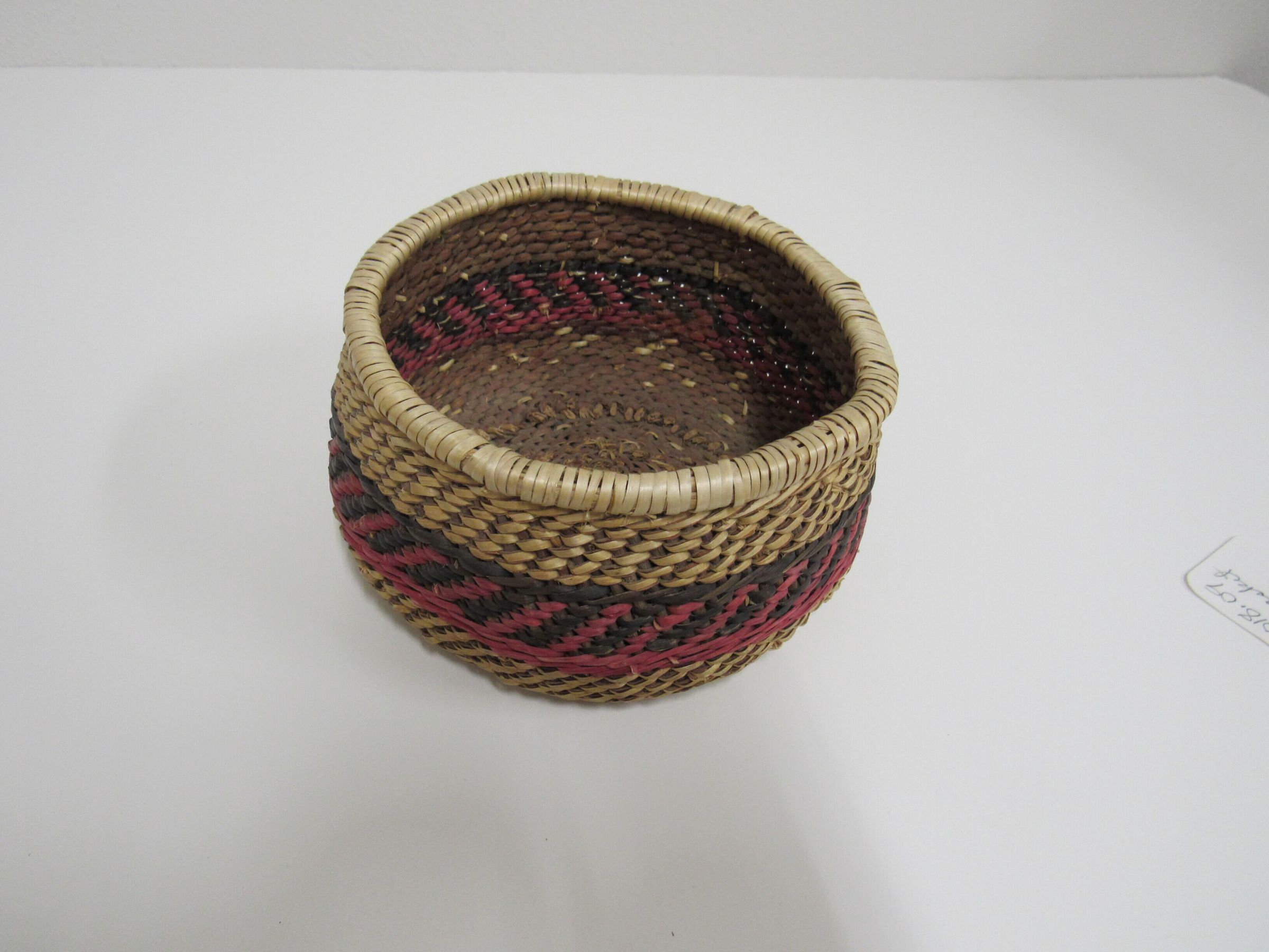 Small basket, undated and unsigned - 5-1/2" dia, red and black trim