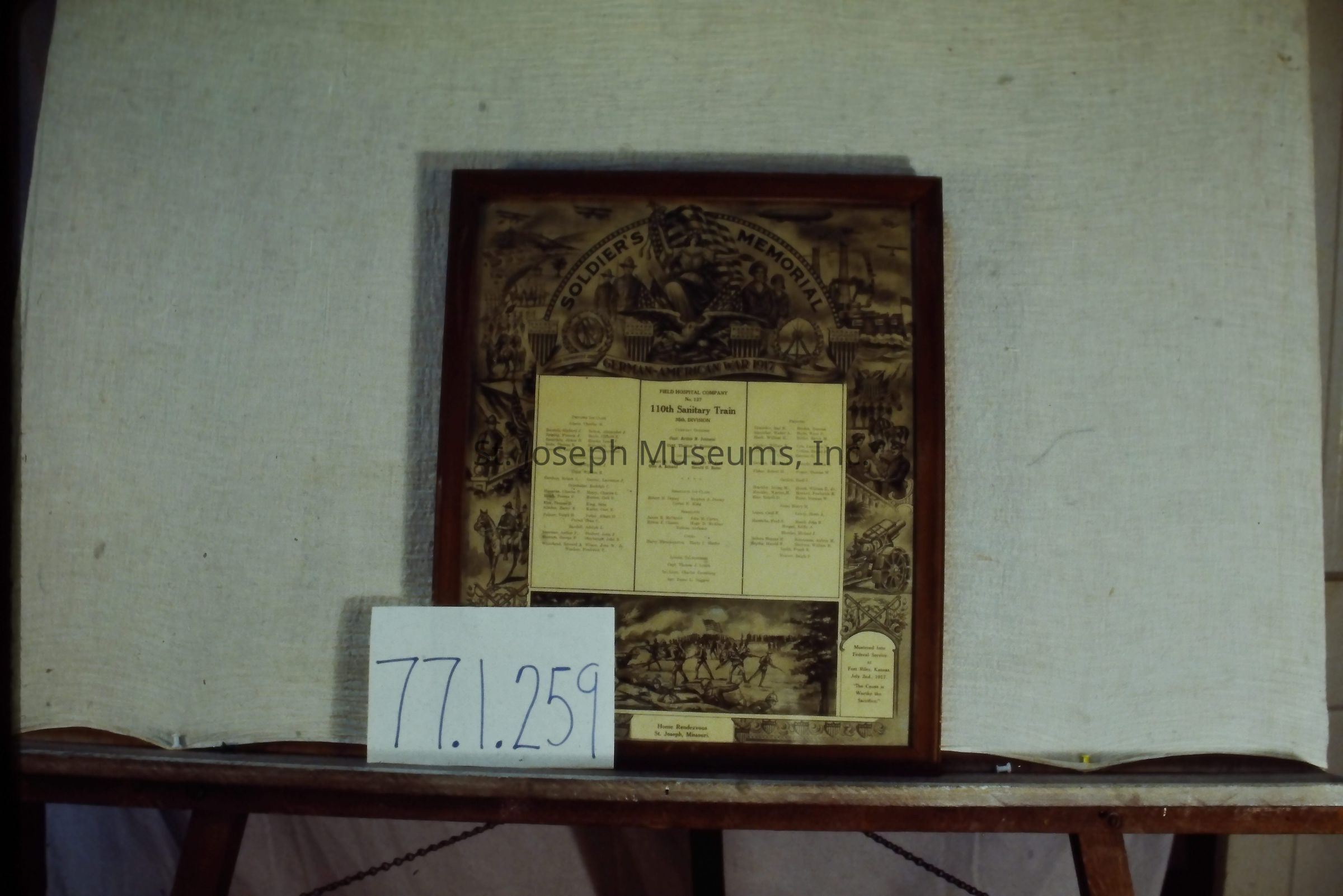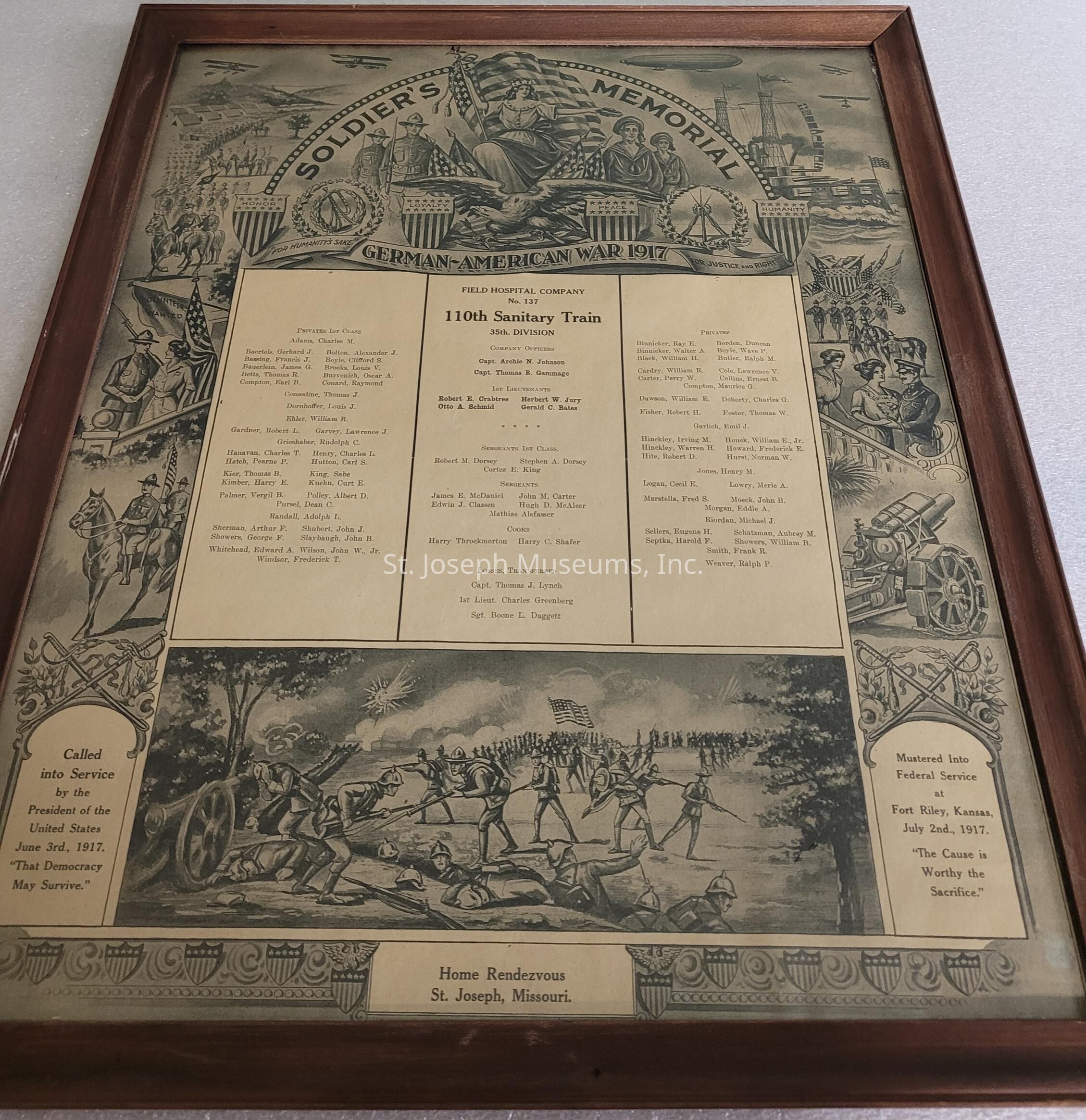 SOLDIER'S MEMORIAL & FIELD HOSPITAL, CO NO 137, 110TH SANITARY TRAIN/WW I 1917/FRAMEDLexicon