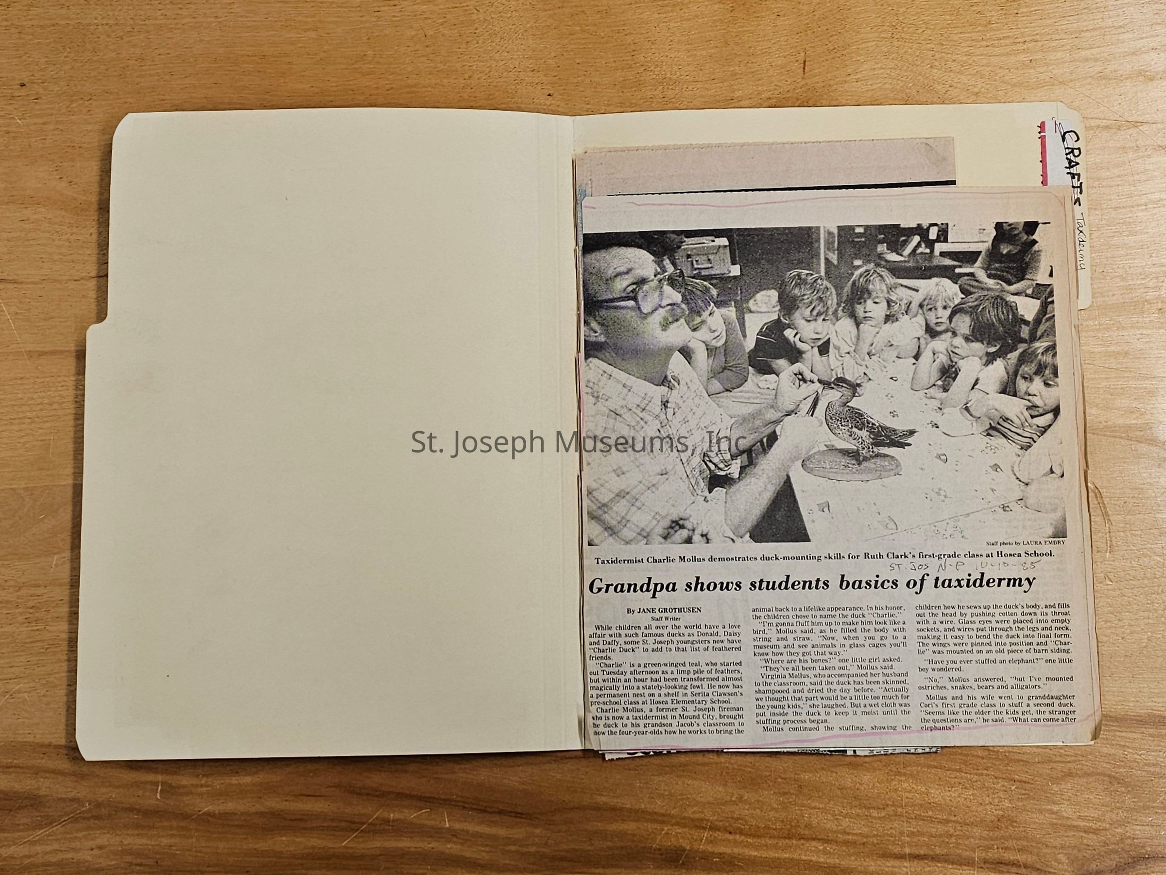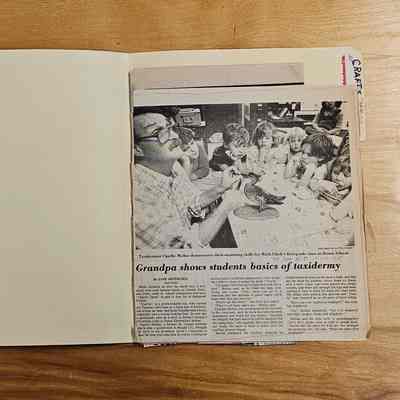 Newspaper articles about taxidermy and wood carving birds. 4 articles from the 1980s