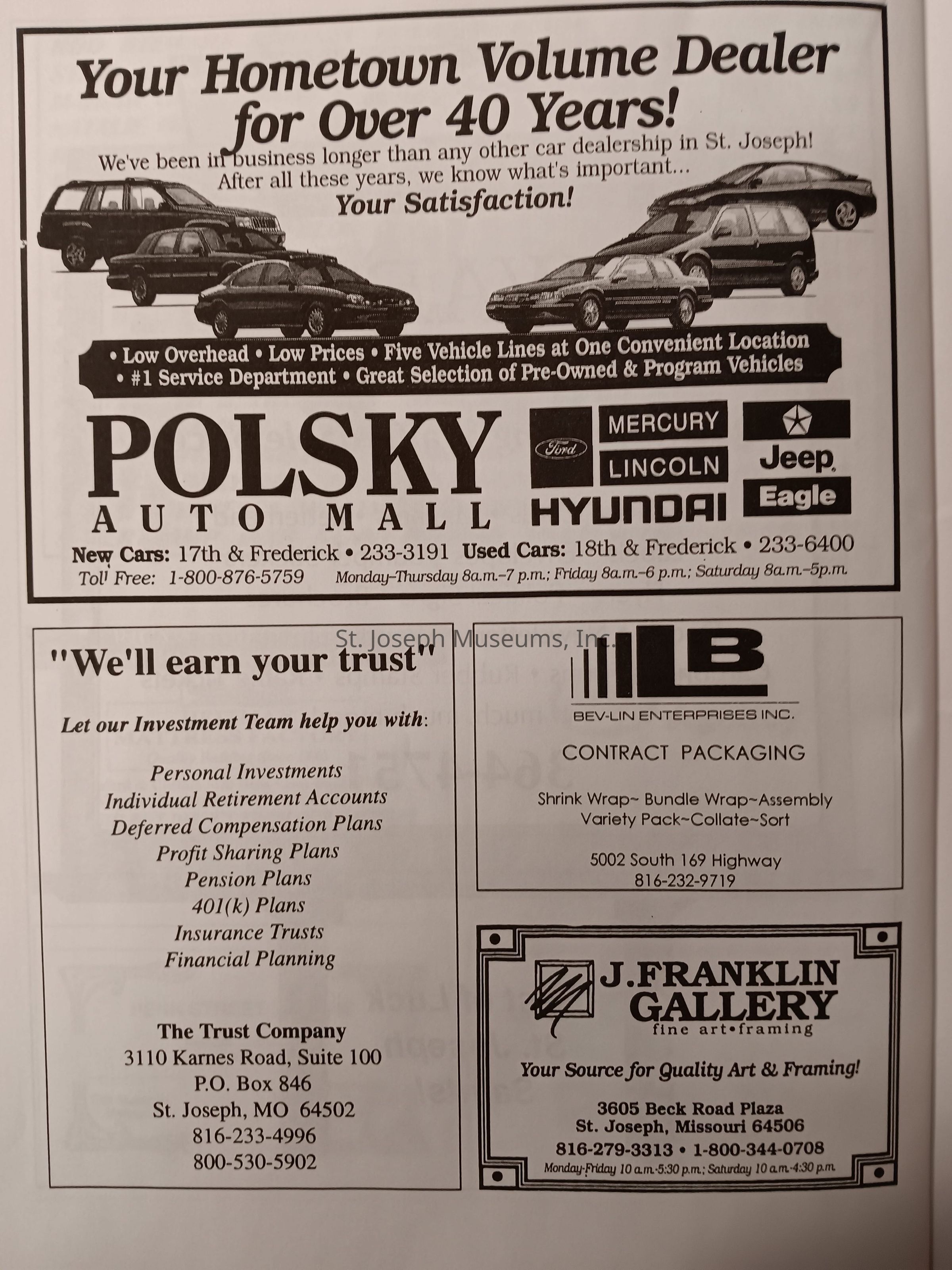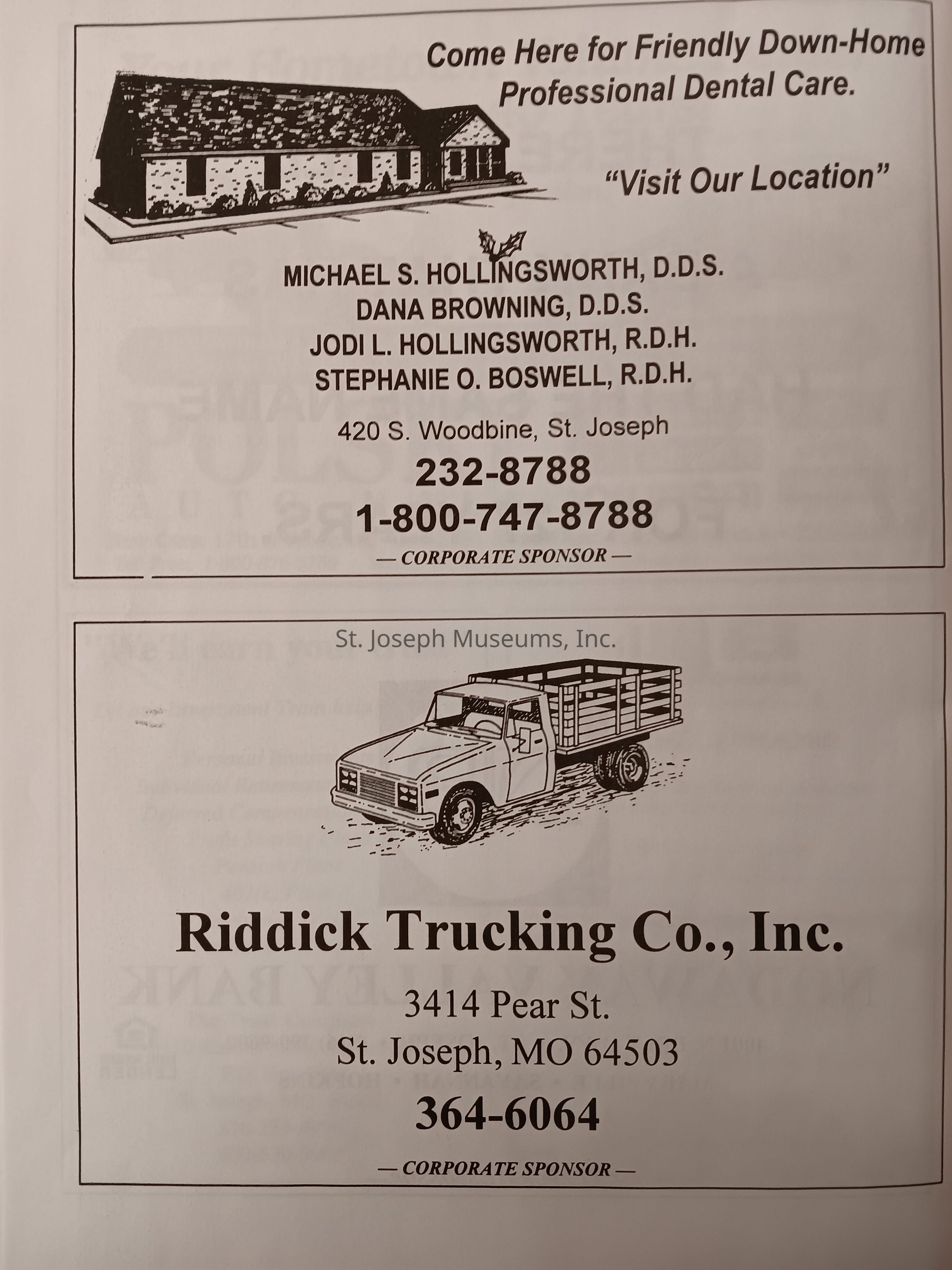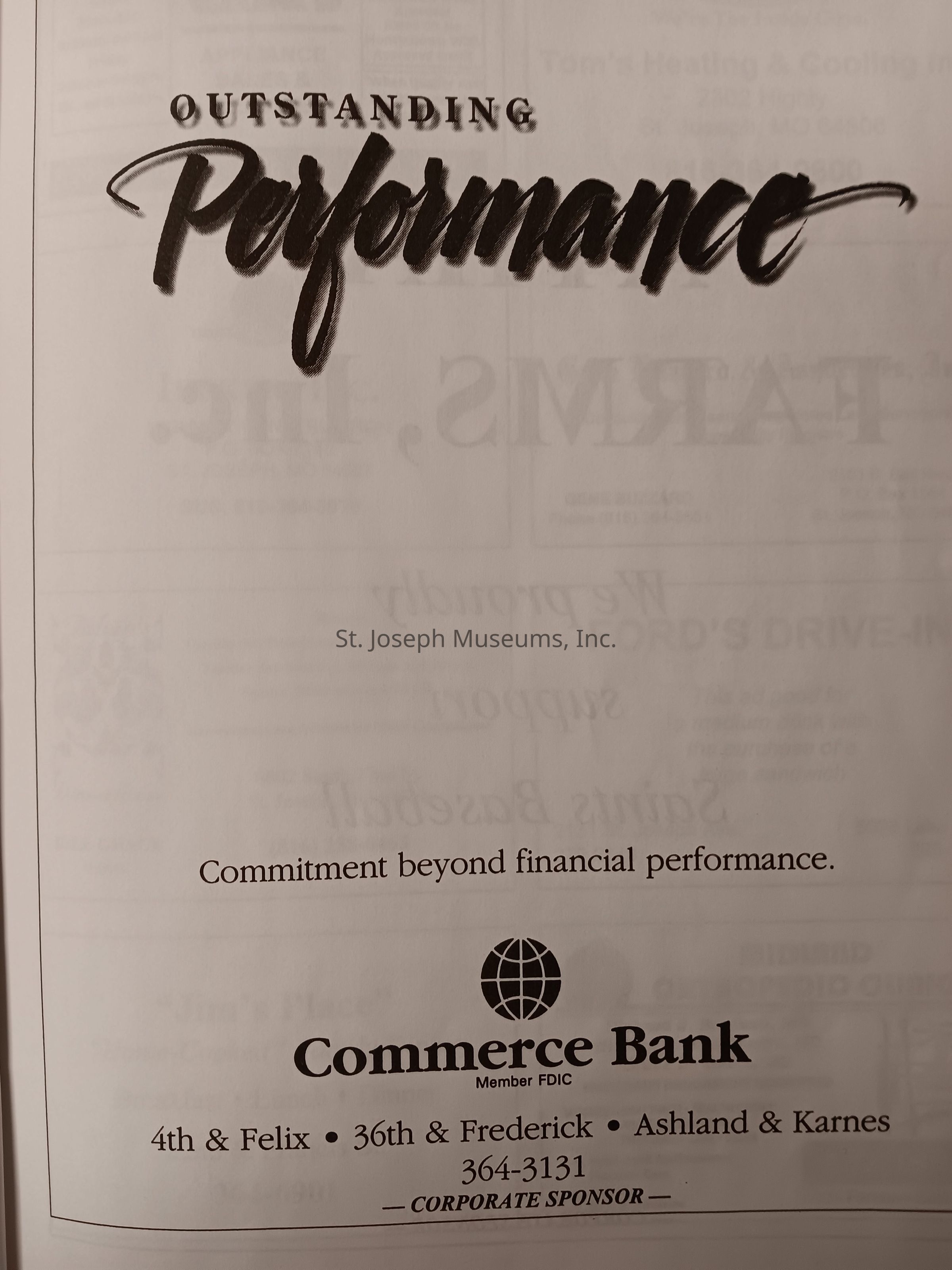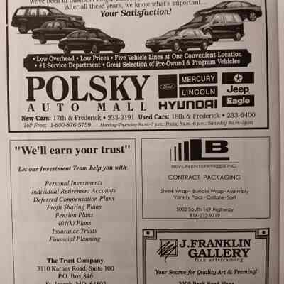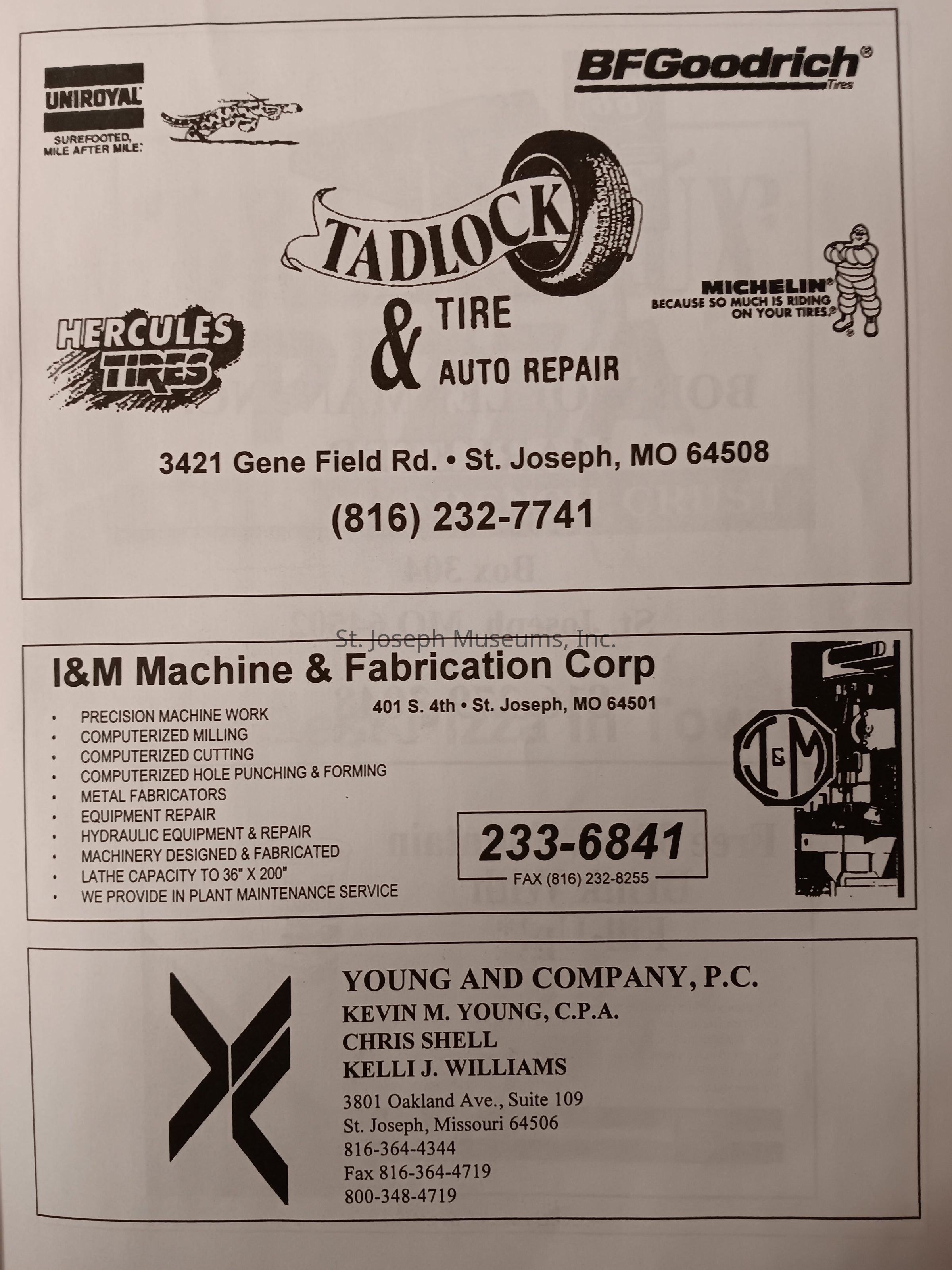 There was no Table of Contents nor page numbers in the first magazine. This being the inaugural edition it contains letters from the newly formed St. Joseph Saints Baseball President, and welcome letters from the City of St. Joseph and the Convention and Visitors Bureau. The first issue lists the Board of Directors and the M.I.N.K. (Missouri, Iowa, Nebraska, and Kansas) Baseball League teams. There are several pages devoted to photos of the players, coaches, and staff as well as space for autographs. The remainder of the issue contains advertisers and Corporate Sponsors.Lexicon