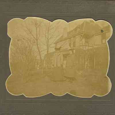 Photograph of two women standing outside a home.