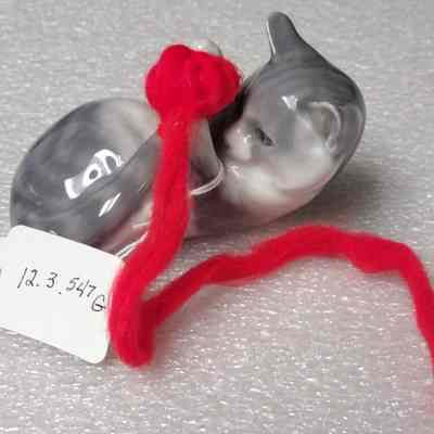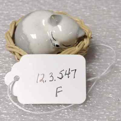 F. Ceramic kitten in basket G. Ceramic kitten playing with ball of yarn.
