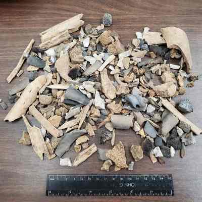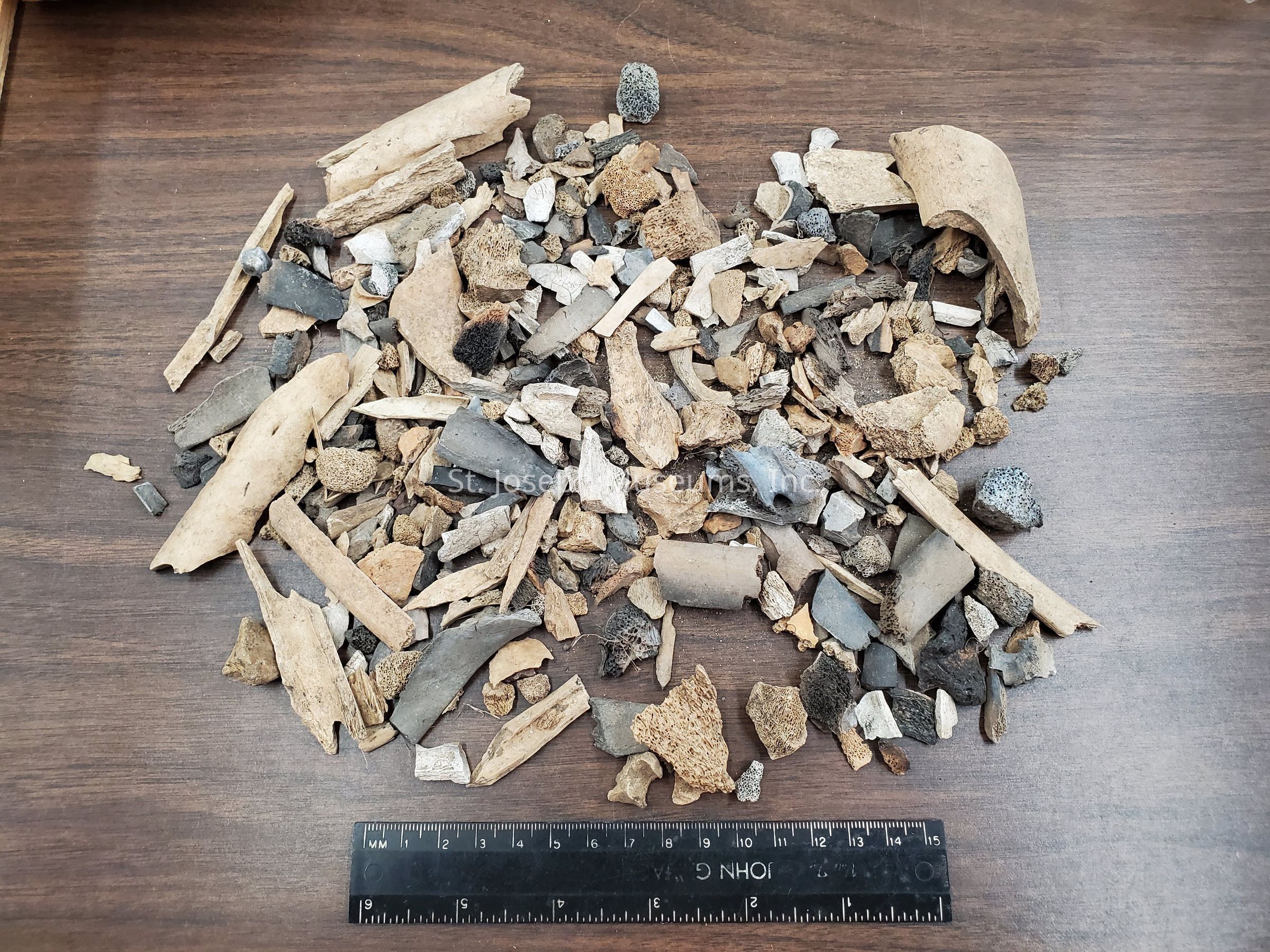 23BN1 King Hill Site Bag 536 Square 3 Level 8 Unidentified Bone Count 1 bag Bone fragments, some worked/charred Bag reads: 23BN1 Bag #536 N.S. King; 7/13/72 Sq 3, Level 8 39"-42" s&s >1/4" John Wagoner, 9/13/72