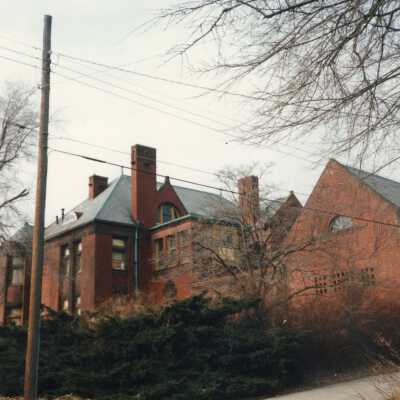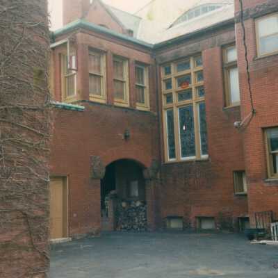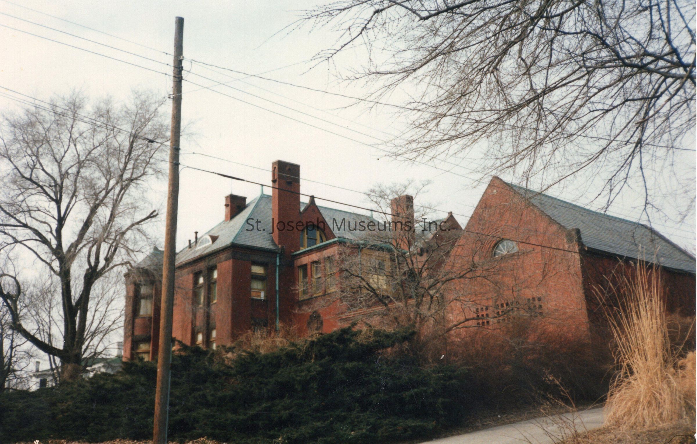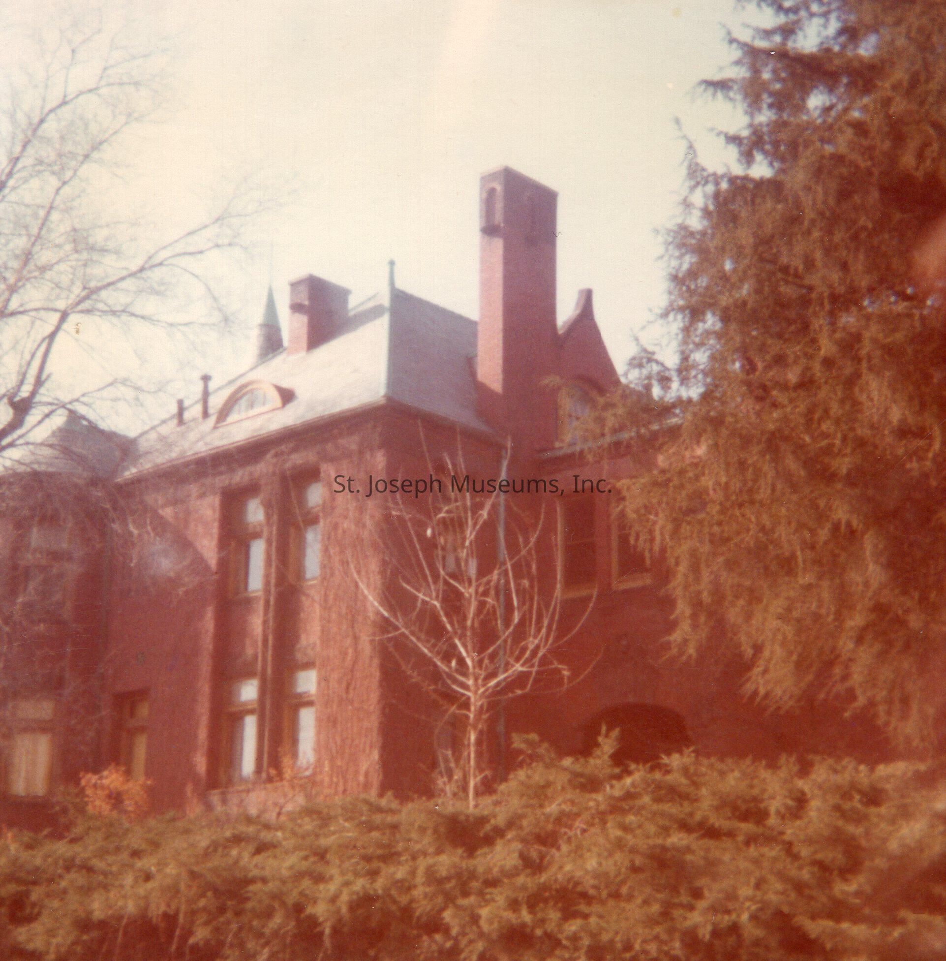 August (A.J.) Residence, 19th & Felix, NE corner, Photos (4), c. 1990. Four color snapshots of 2-story red-brick mansion with turret, and inner courtyard. It served for a time as the home of the St. Joseph Museum ( until the acquistion of the Wyeth-Tootle Mansion in 1948).Collection