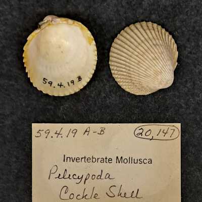 Invertebrate mollusca pelecypoda cockle shell both halfs of shell