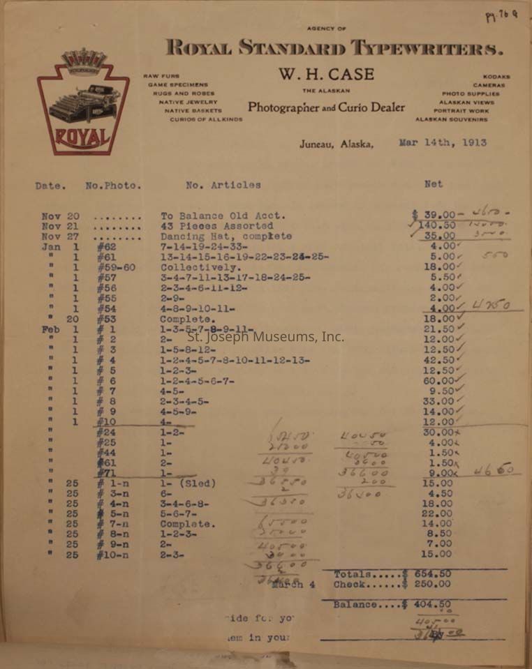 W H CASE PHOTO 57, ITEM #7, ID 143/378 HLG LEDGER VOL. 1, pp. 76 g, 81F2 INVOICES 3/14/1913, 7/8/1913