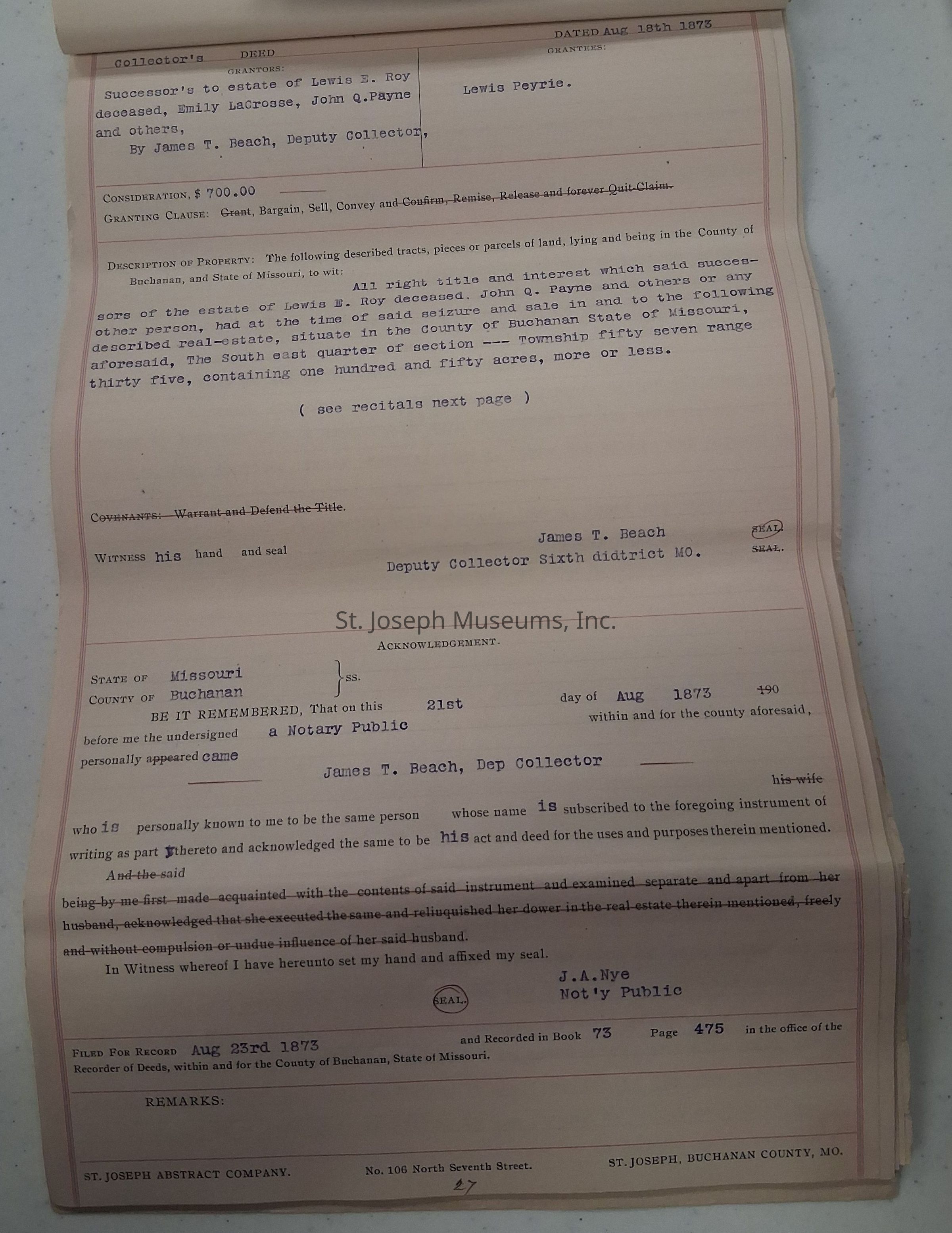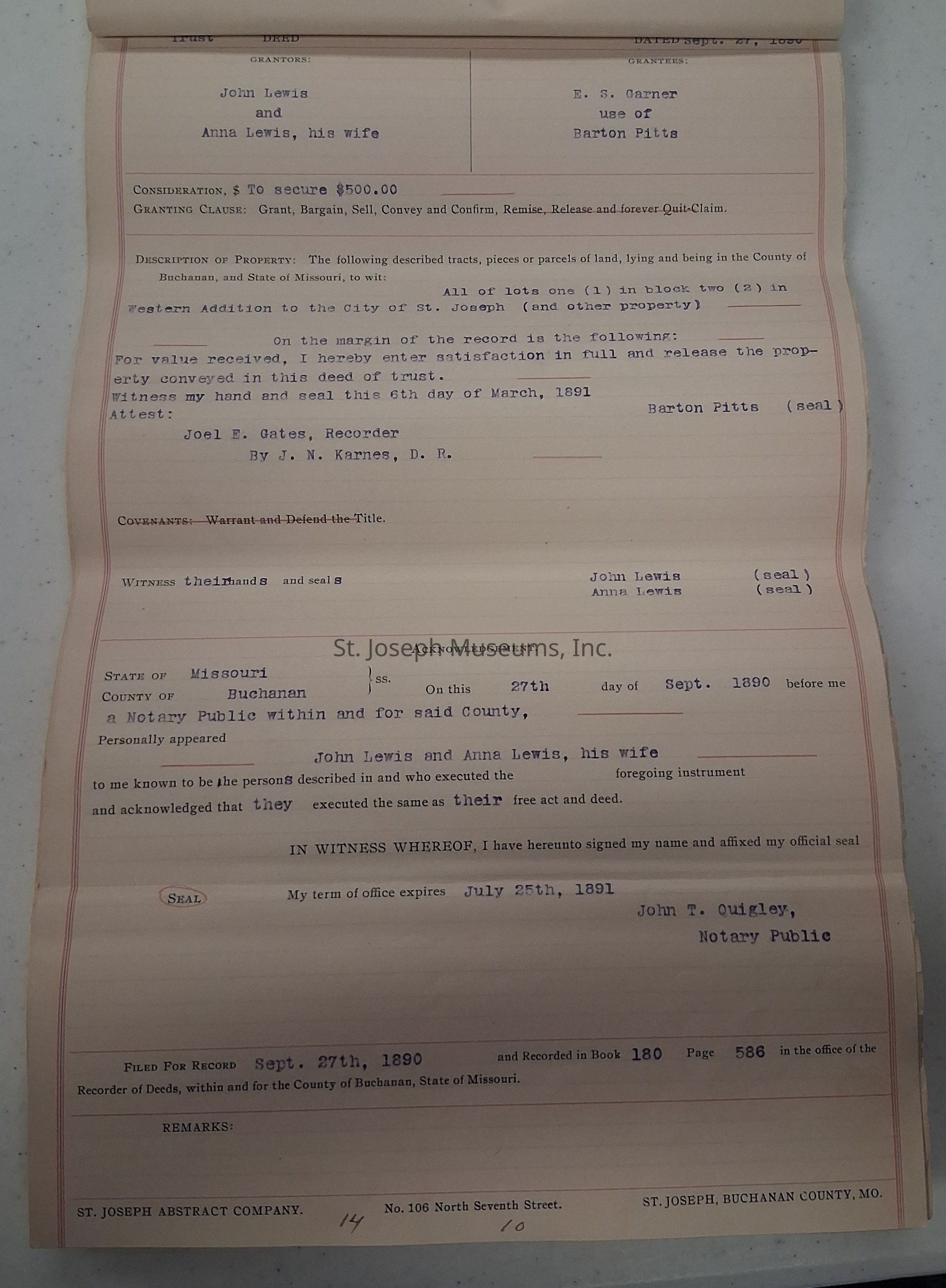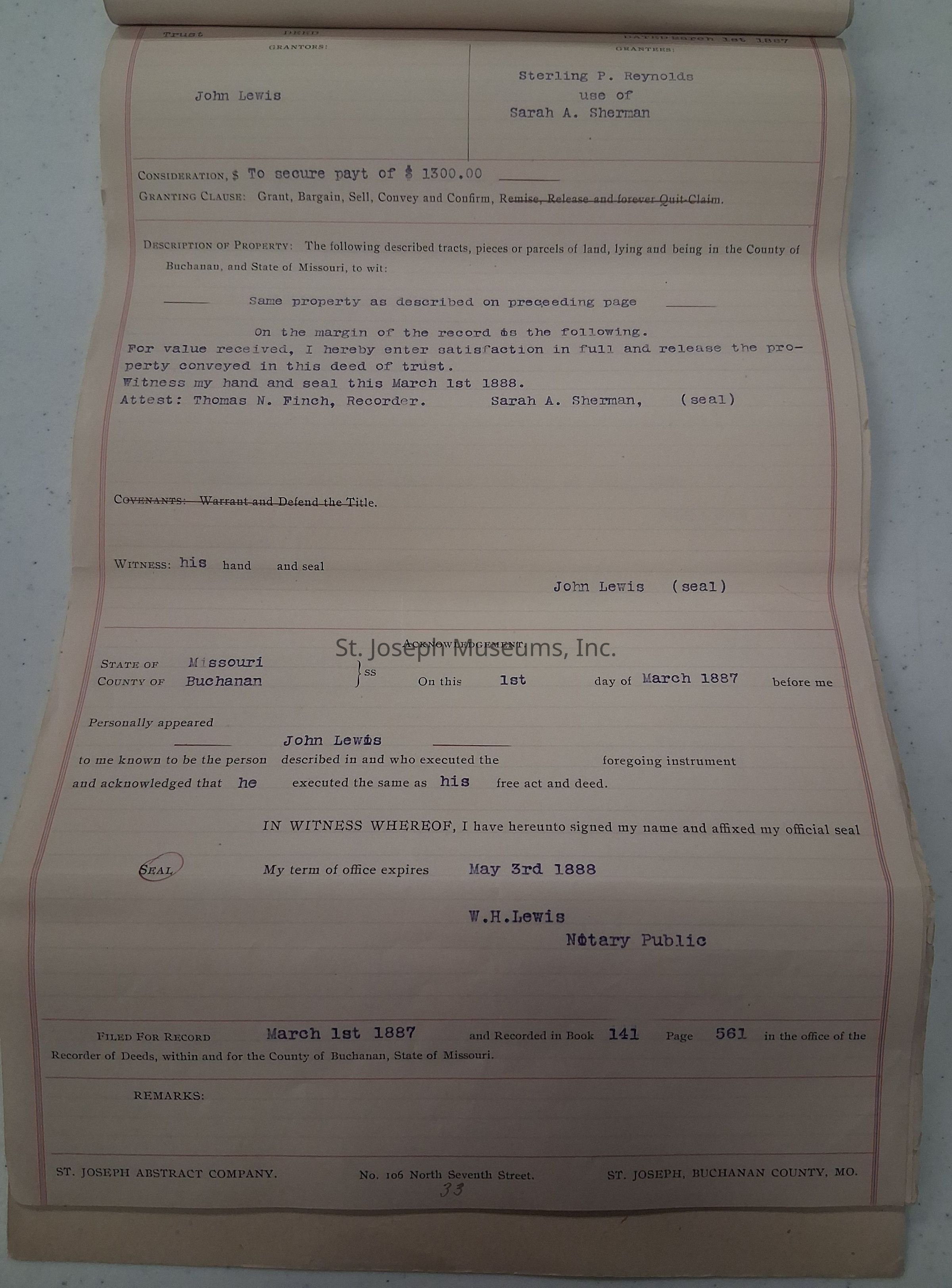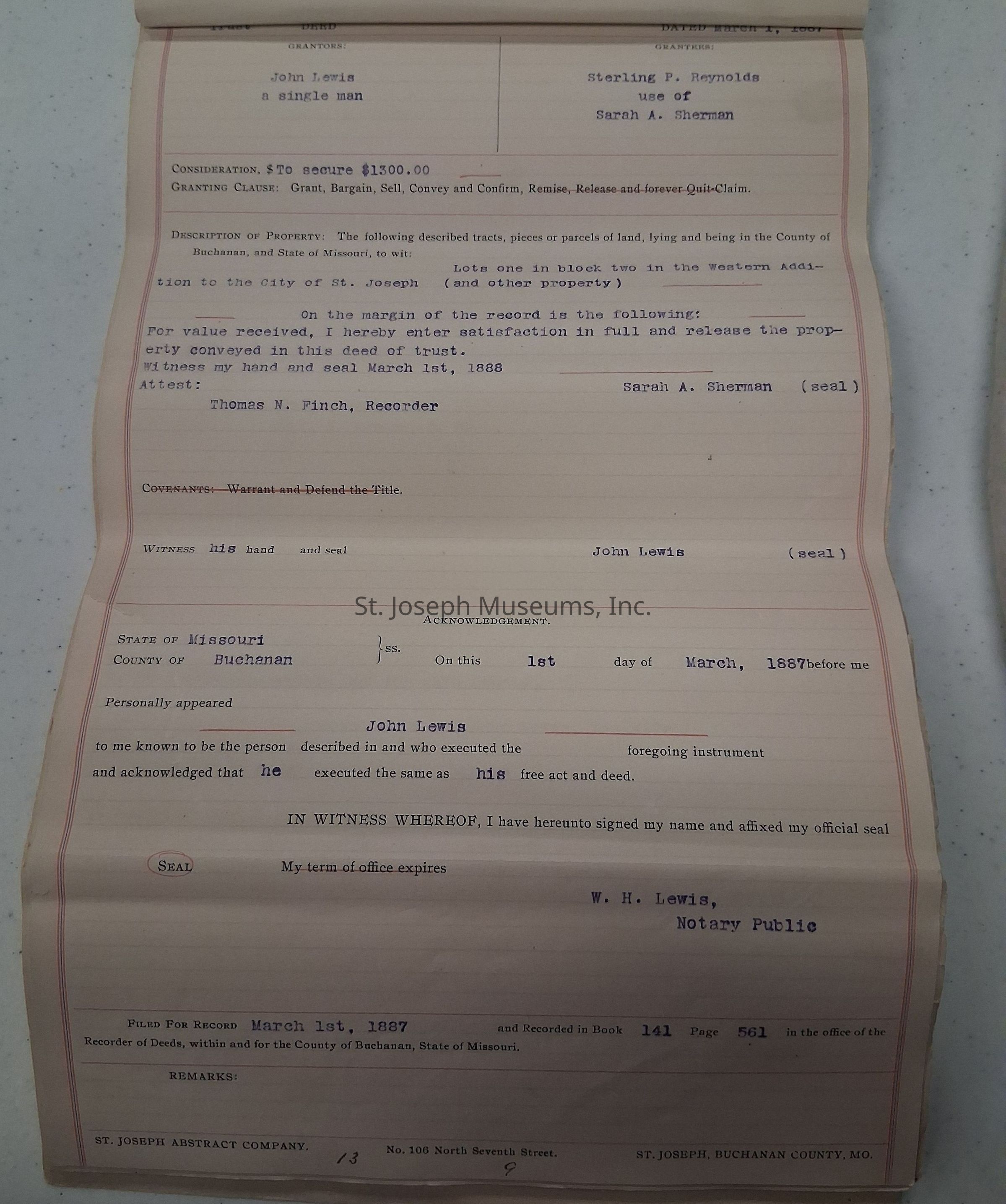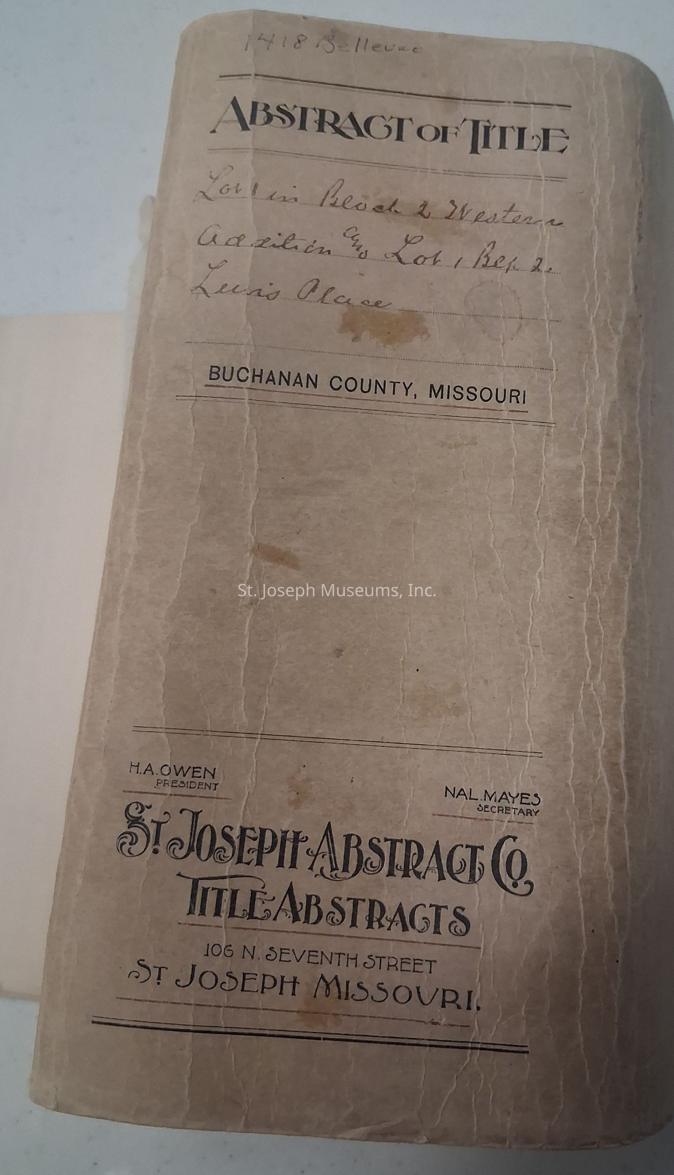 Abstract of Title for 1418 Bellevue