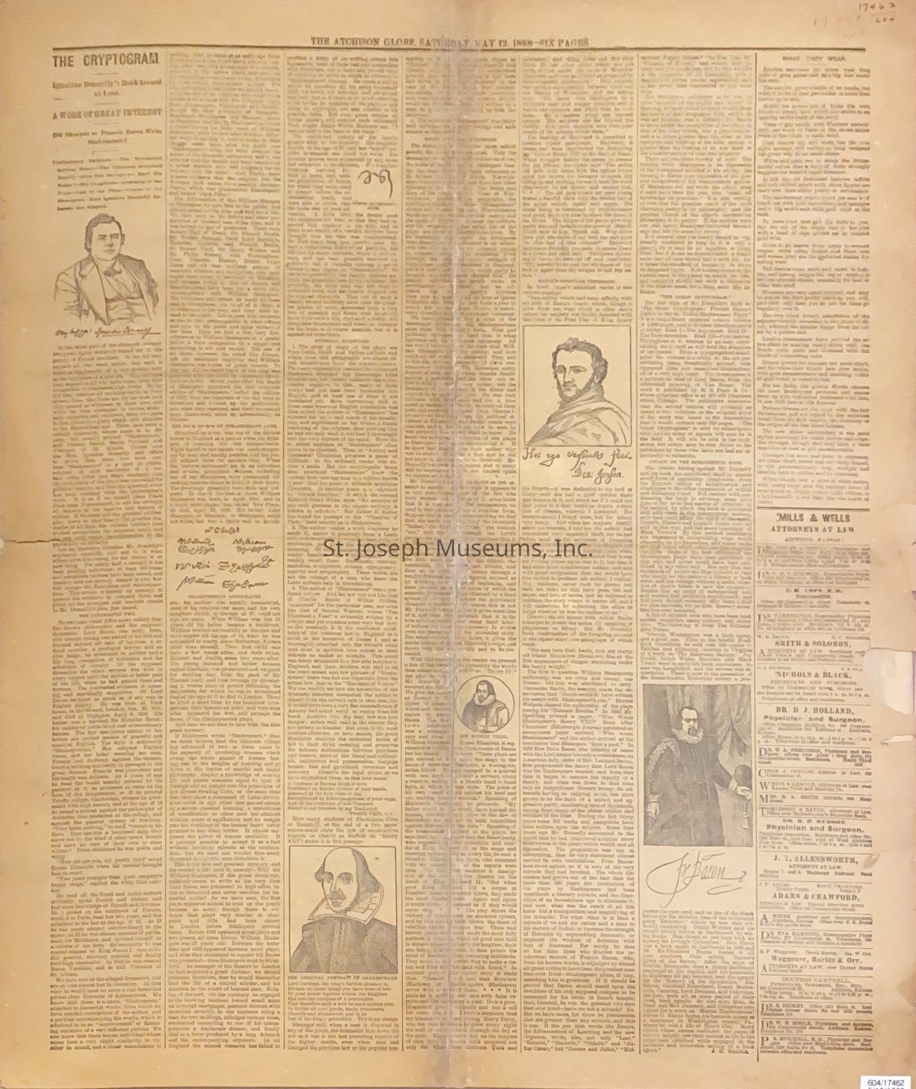 Newspaper - Atchison Globe - Inside page only. 05/12/1888