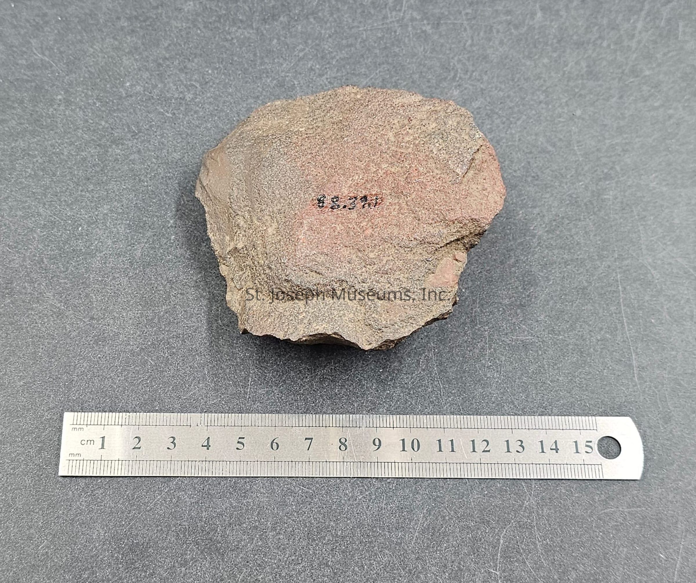 IMPLEMENT/IRREGULAR SHAPE/ PROBABLY HEMATITE/ RED-BROWN COLOR/CORE- SOME FLAKES OFF SIDESCollection