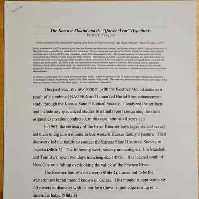Jim Feagins was a presenter. Presented "The Koerner Mound and the 'Quiver Wear' Hypothesis".