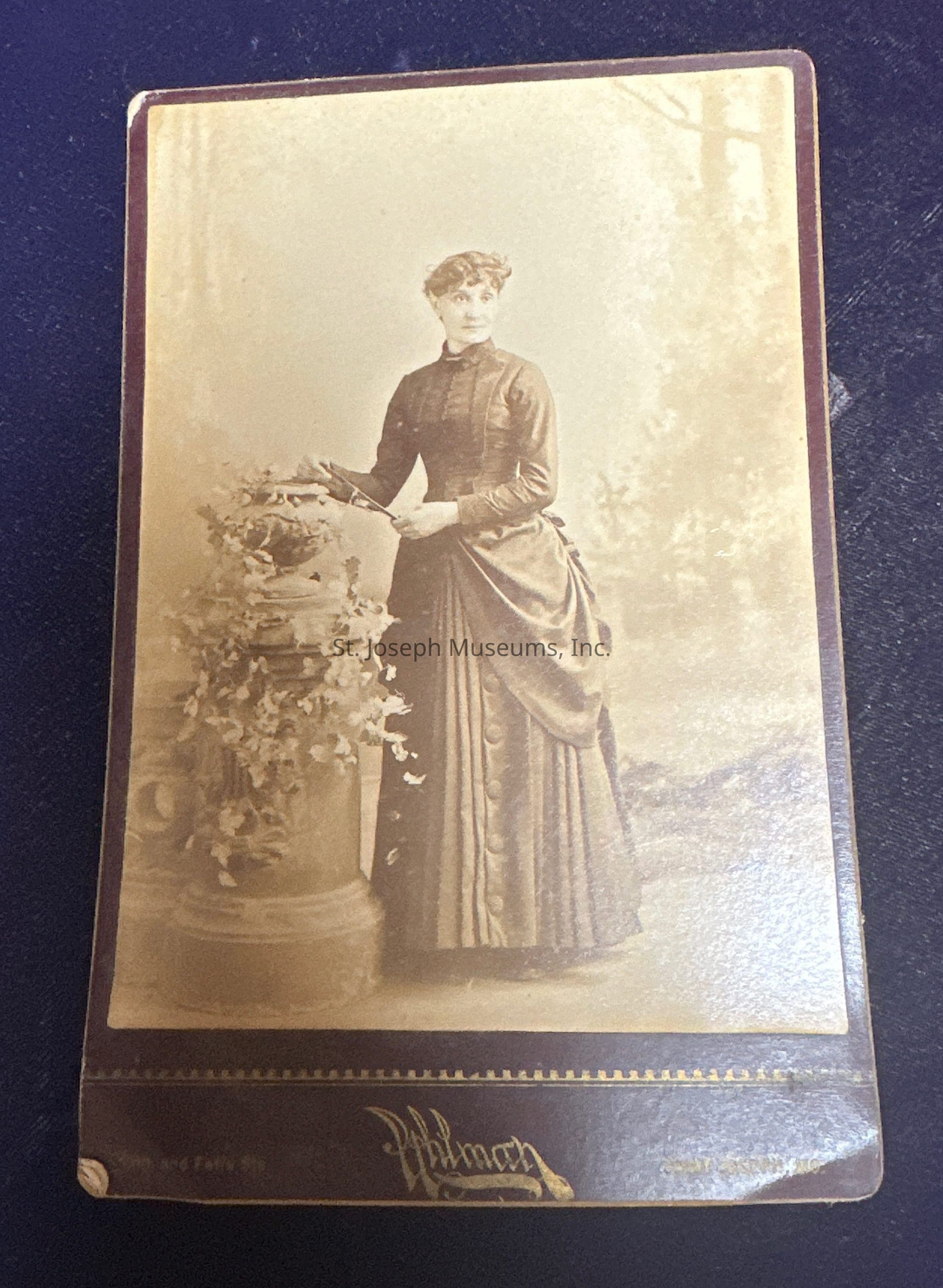 Uhlman monochrome photograph of a woman posing by flowers.Photograph Details