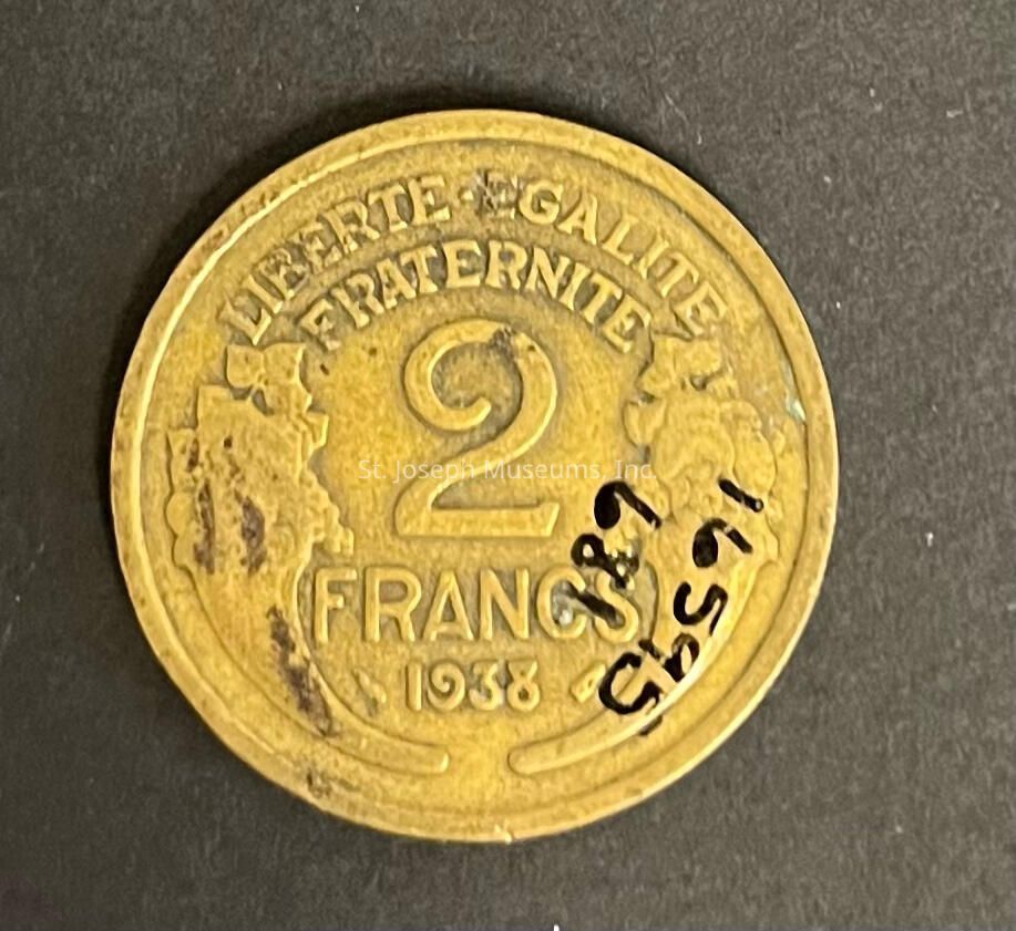 1938 French 2 c franc, coin/token