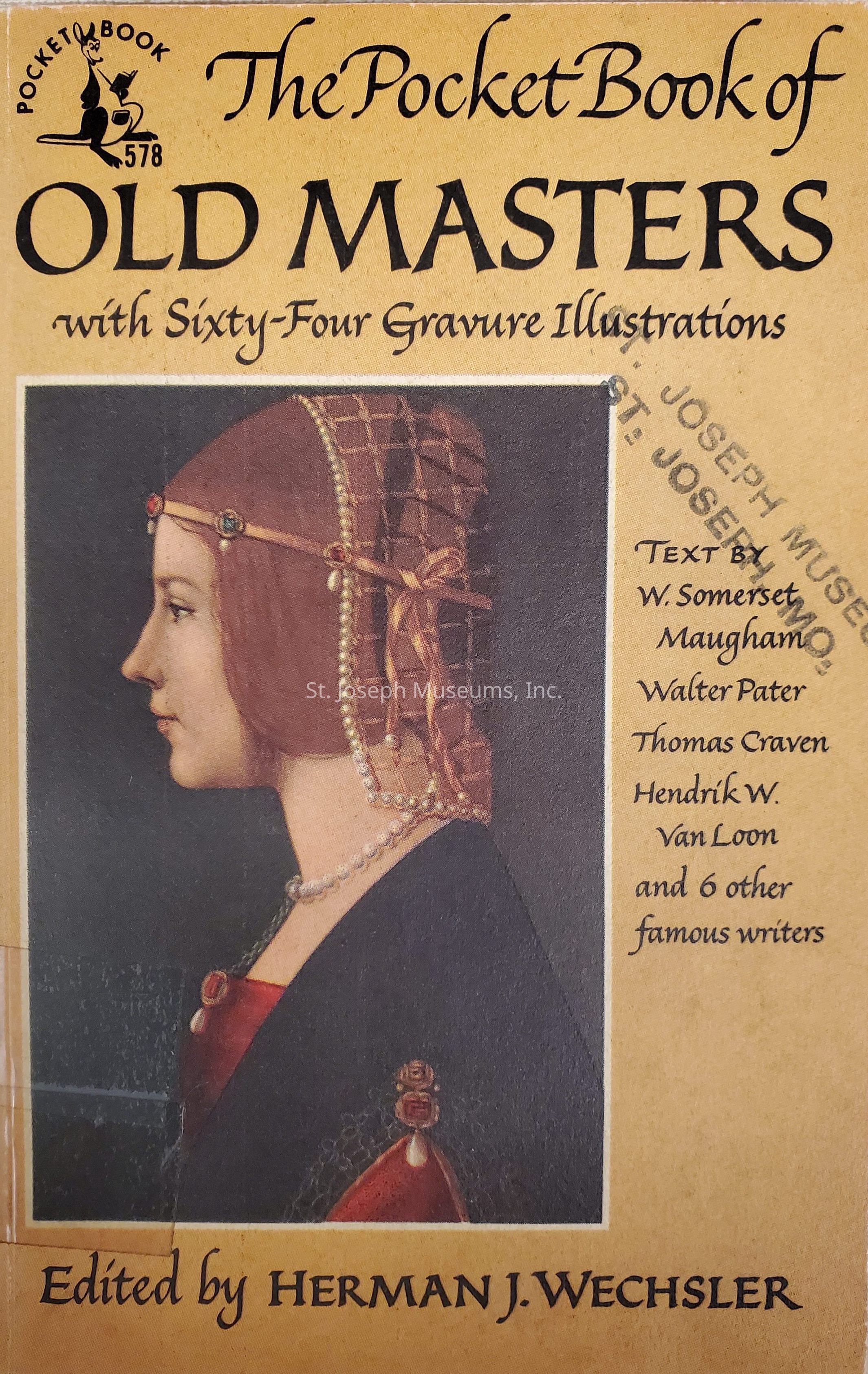 The Pocket Book of Old Masters includes Sixty-four Gravure Illustrations. The text is by W. Somerset Maugham and several other famous writers. Among the ten old masters included in this book are: Leonardo da Vinci; Rachael; Michelangelo; El Greco; Titian; and Rubens.