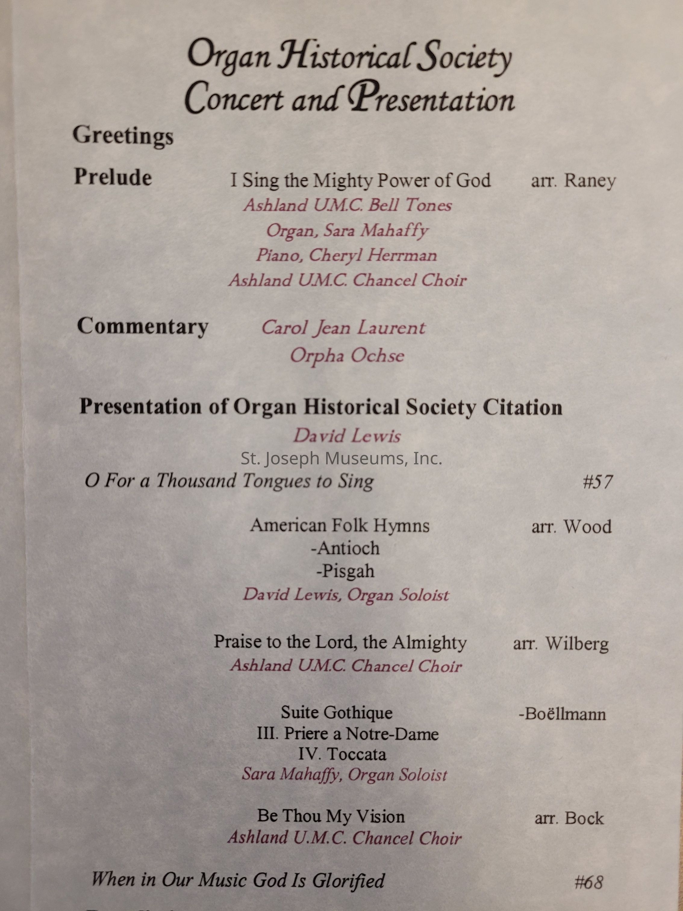 Pamphlet about the Organ Historical Society ConcertEntry/Object ID