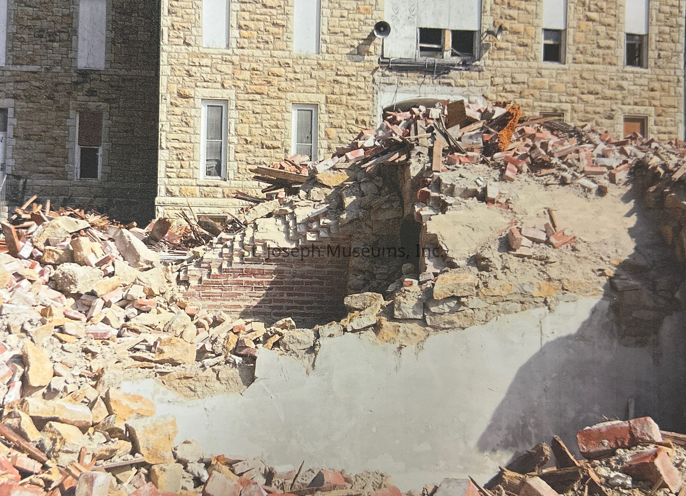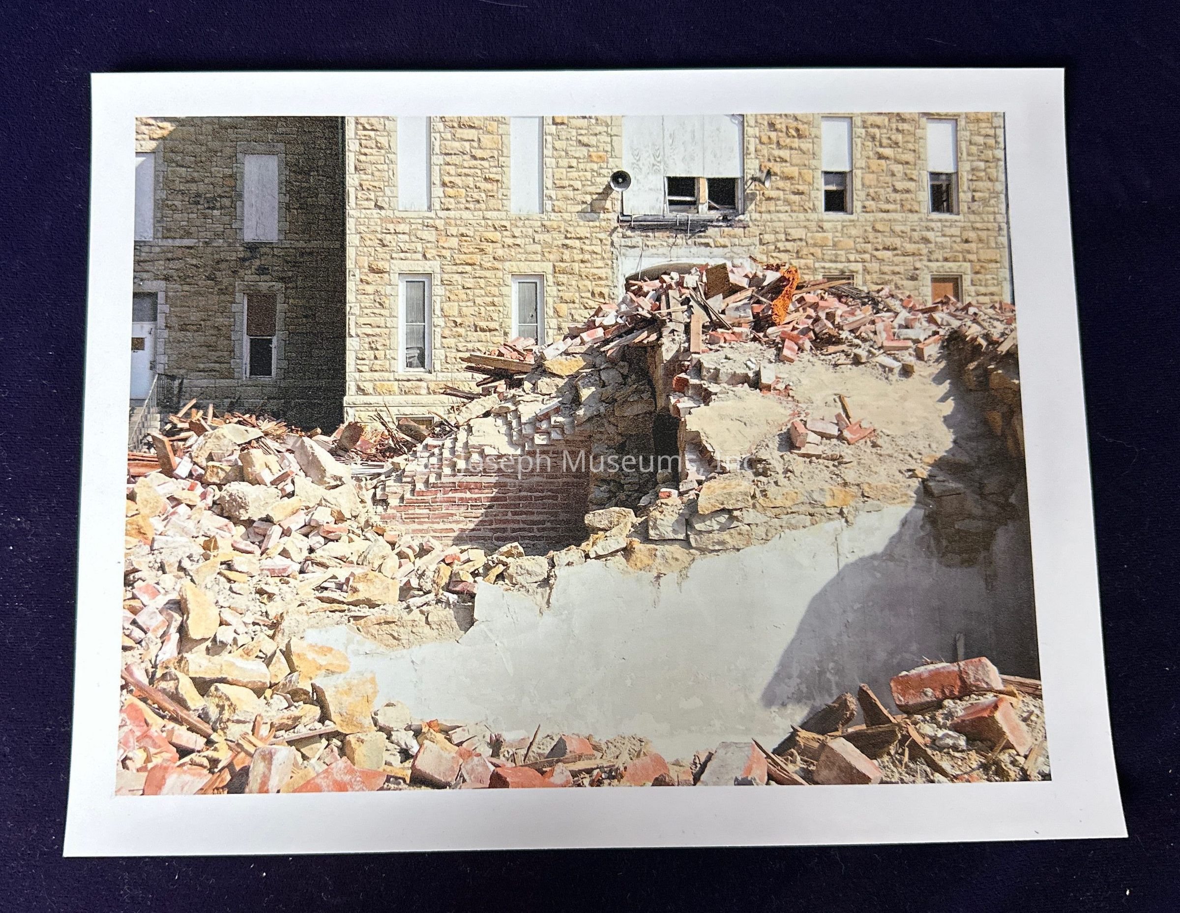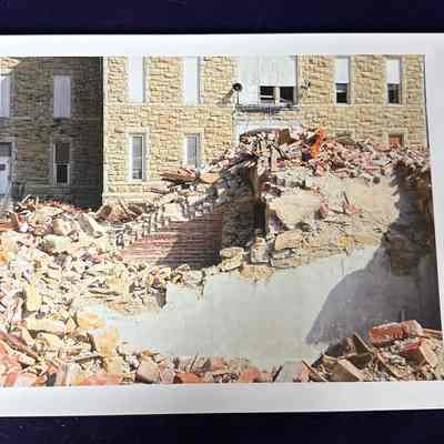 Color photograph taken of damage done to the Topeka State Hospital taken by Larry D. Slawson.