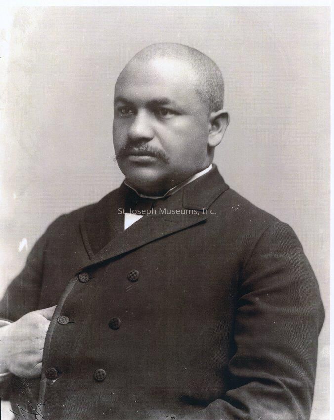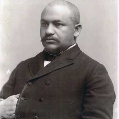 Ricketts, Matthew, Dr., Portrait Photo, c. 1900. b/w Photo of Dr. Ricketts, a black man in mid-life, hair cut very short, mustache but otherwise clean shaven. He is wearing a dark, double-breasted jacket with his hand inside Napoleon style. Ricketts was a "colored" physician, according to the City Directory, 1902, with residence and practice at 308½ Edmond.