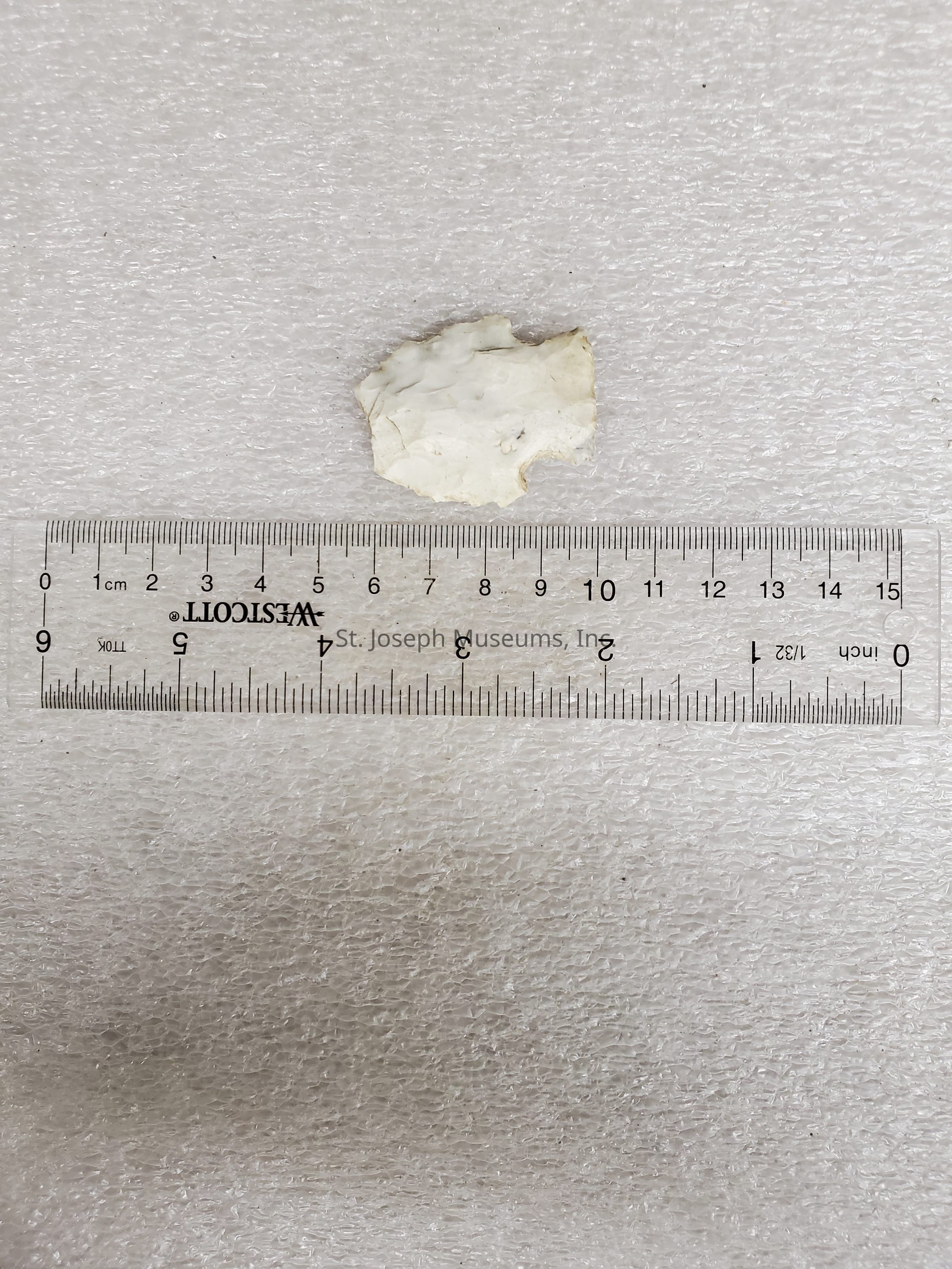 PROJECTILE POINT FRAGMENT/WHITE COLOR/TYPE: SHANK, BARBED