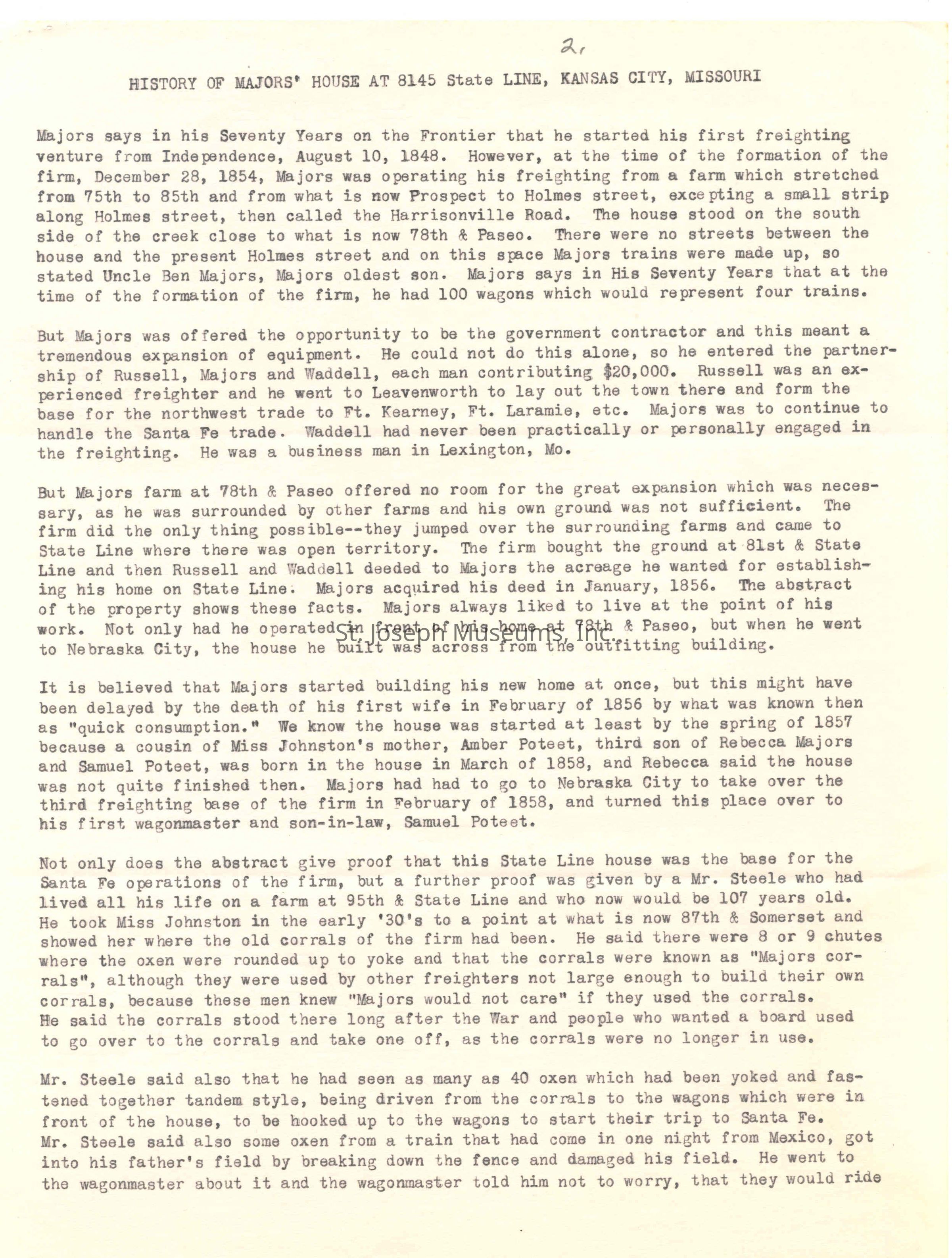 Files contain correspondence with Pony Rider descendants, Pony Express rider biographies, newspaper clippings related to the Pony Express, and miscellaneous records, photos, and documents collected from major private and University libraries among other sources. NOTE ABOUT ORIGIN OF LIBRARIES FILE. Prior to the opening of the renovated Pony Express Museum in 1993, St. Joseph Museum staff did extensive research on the Pony Express. All of the libraries in this folder were visited and copies of all material related to the Pony Express were made. This was done from 1991 to 1993. Information from this research was used in the new exhibits of the Pony Express Museum and in preparation of the book On the Winds of Destiny. In 2015, the file from the Pony Express Museum was added. Jackie Lewin 7/27/15 CD containing scans of actual documents found in Pony Express Research Files located in file cabinets in Document Storage II area.