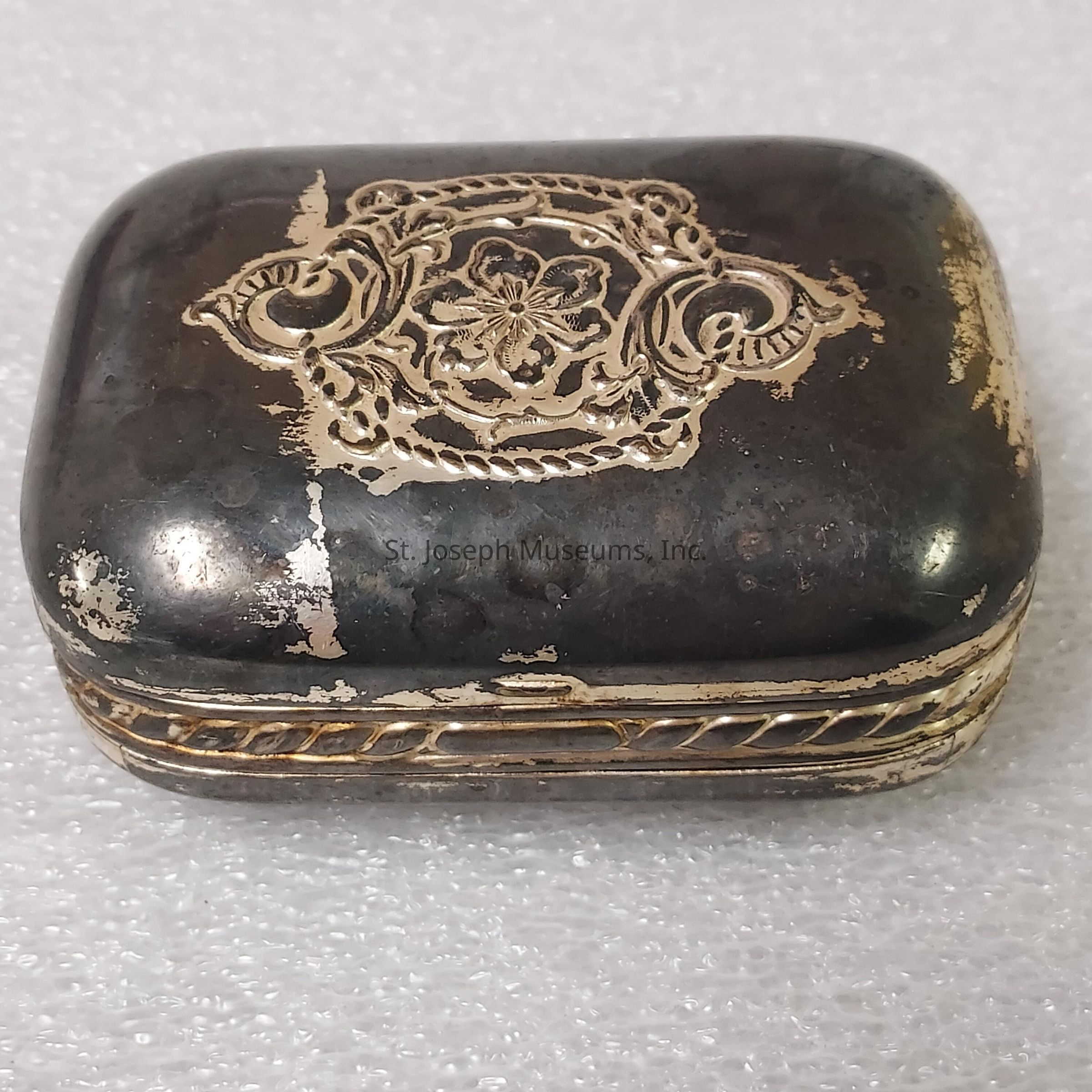 Box/Soap/Aluminum/Tarnished/Floral Designs/ Hinged/4"x2.75"x2"