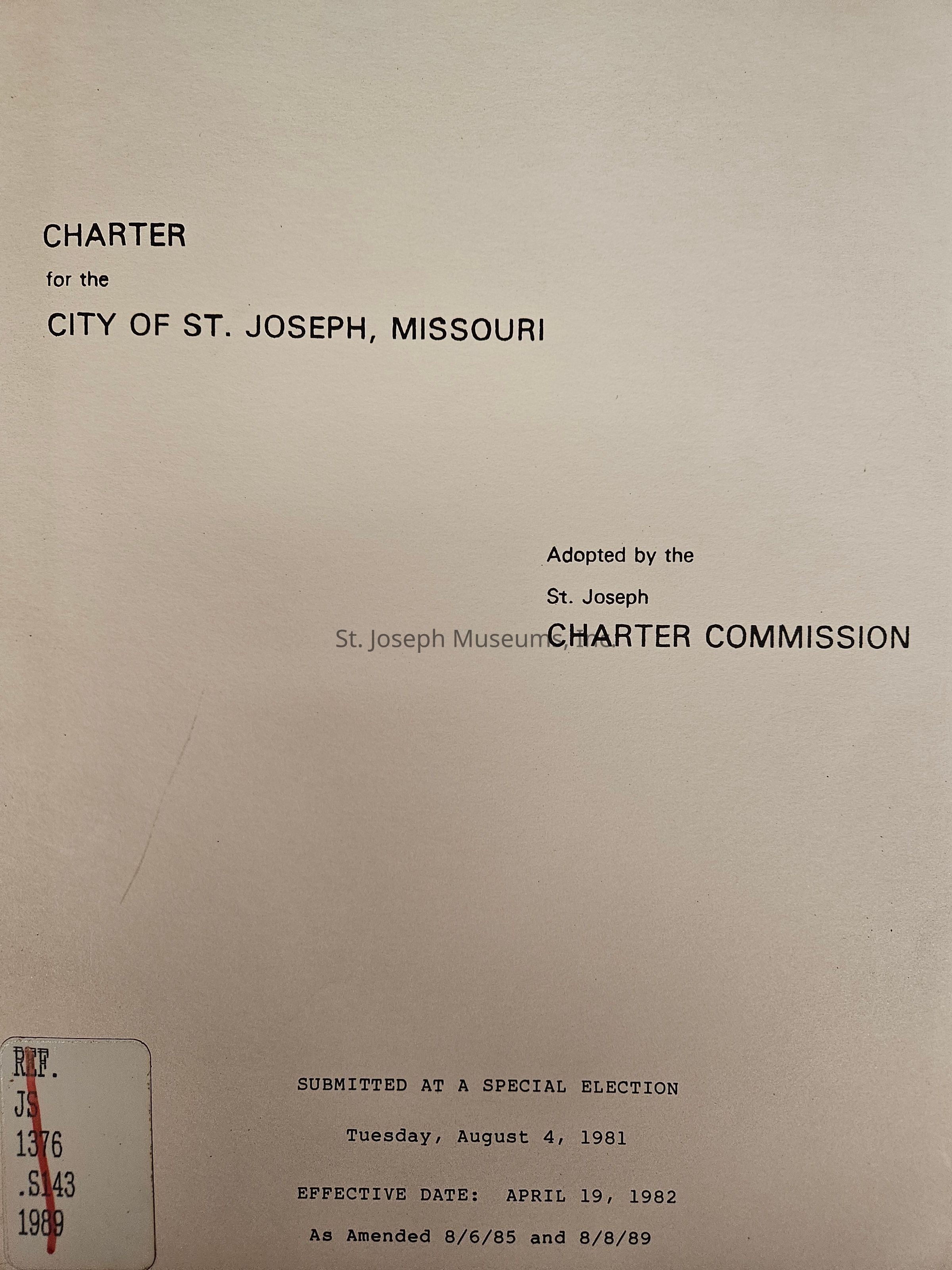 Charter for the City of St. Joseph, Missouri,1981.Entry/Object ID