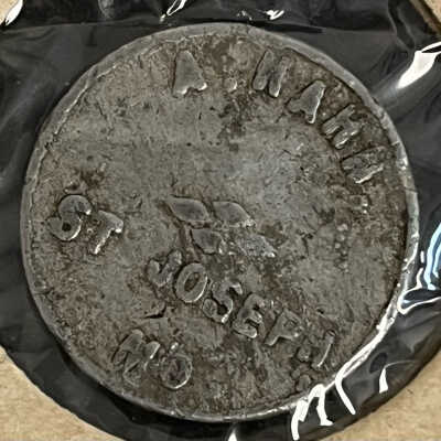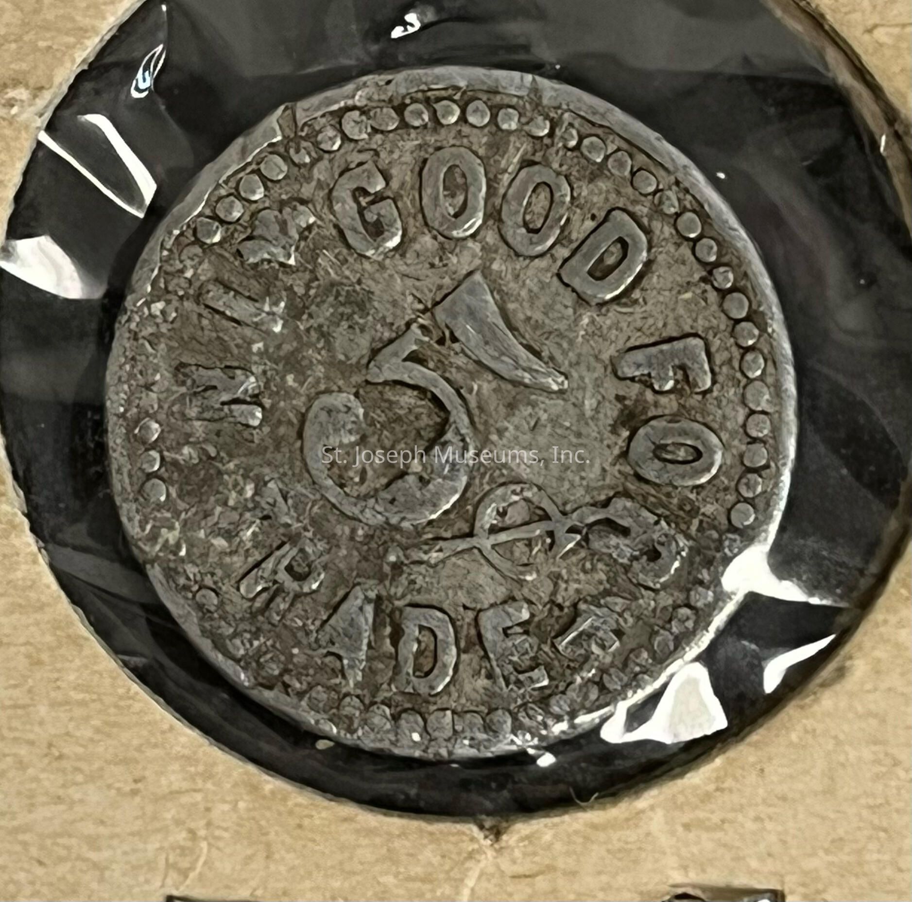 Coin/"A. Hahn"/"St. Joseph, MO"/"5¢"/"Good For In Trade"